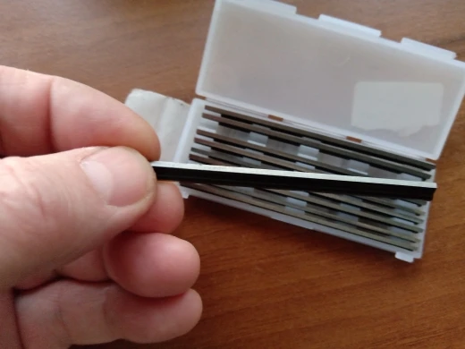 Коробочку продавец просто бросил в пакет. Хоть бы заклеил. Все лезвия рассыпались по пакету. На кромках некоторых из них видны затупленности. Лезвия слегка гнутся(родные лезвия рубанка вообще не гнулись).