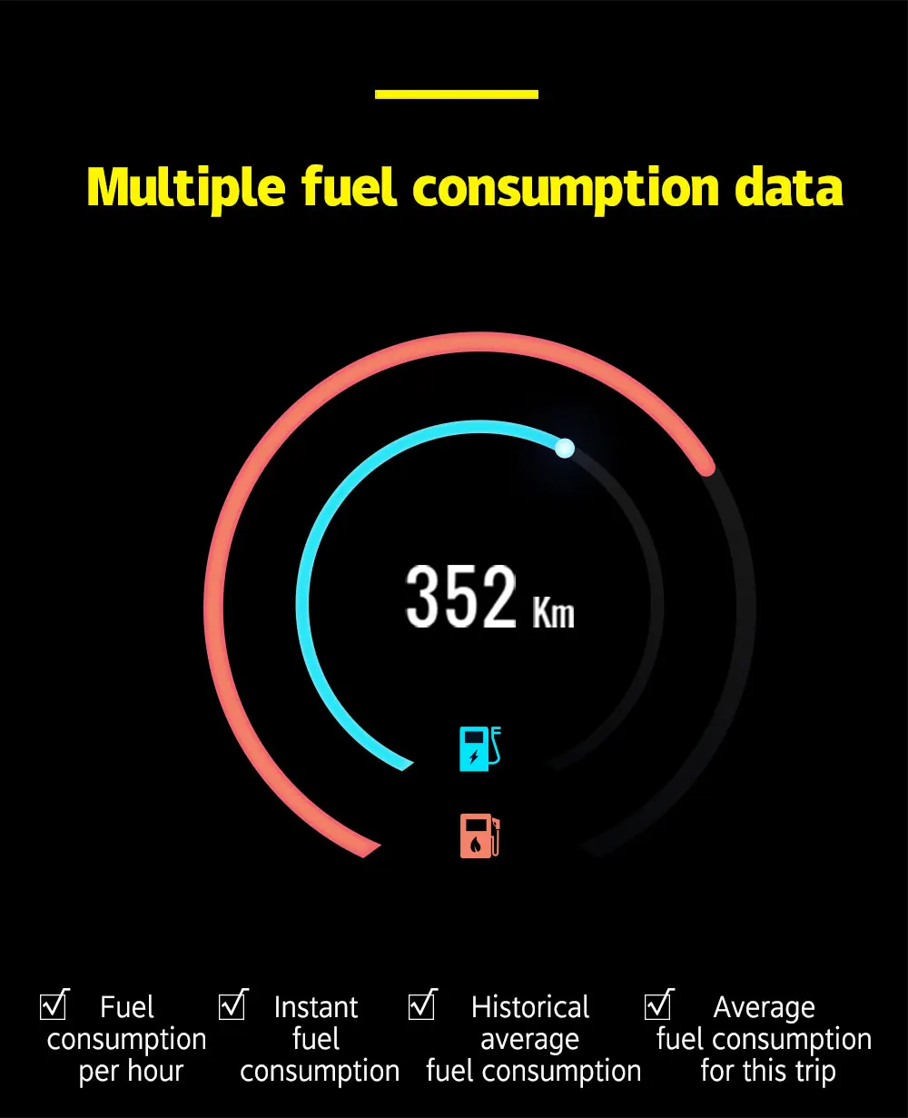 •Информация о дисплее:Скорость транспортного средства, об/мин двигателя, температура воды, напряжение, мгновенный расход топлива, средний расход топлива, одиночное расстояние вождения, общее расстояние вождения, время вождения,Турбо давление, Соотношение воздуха и топлива,Температура масла