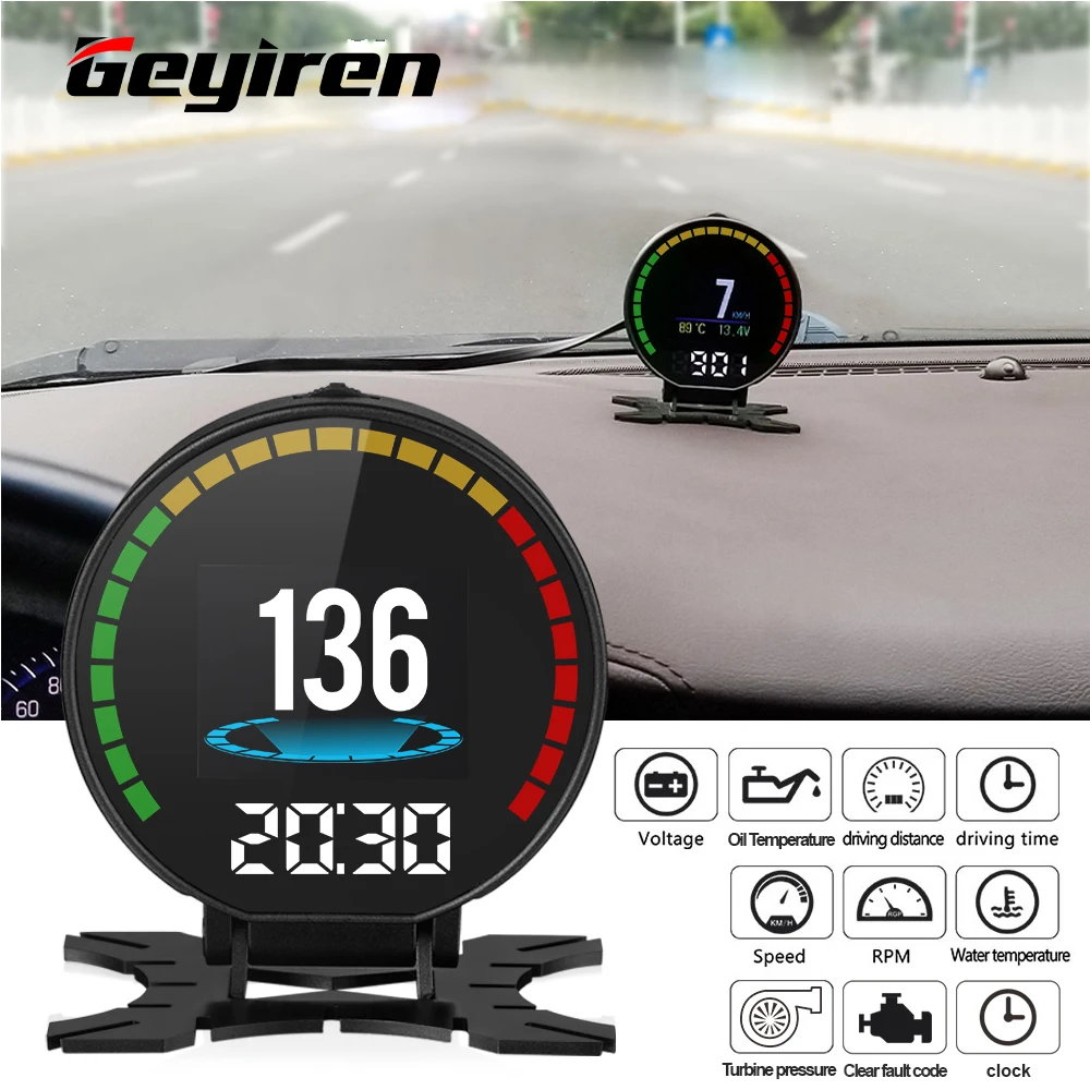 Цифровой датчик скорости GEYIREN P15, автомобильный измеритель давления OBD2, с ЖК дисплеем