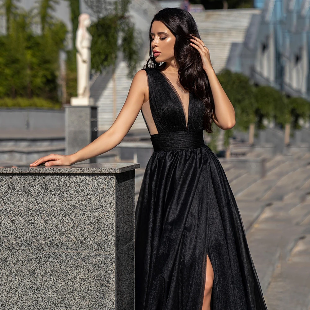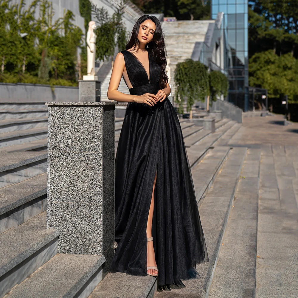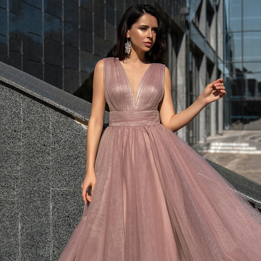 UZN сексуальное ТРАПЕЦИЕВИДНОЕ вечернее платье без рукавов с v-образным вырезом, вечернее платье из тюля с открытой спиной, платье для выпускного вечера на молнии