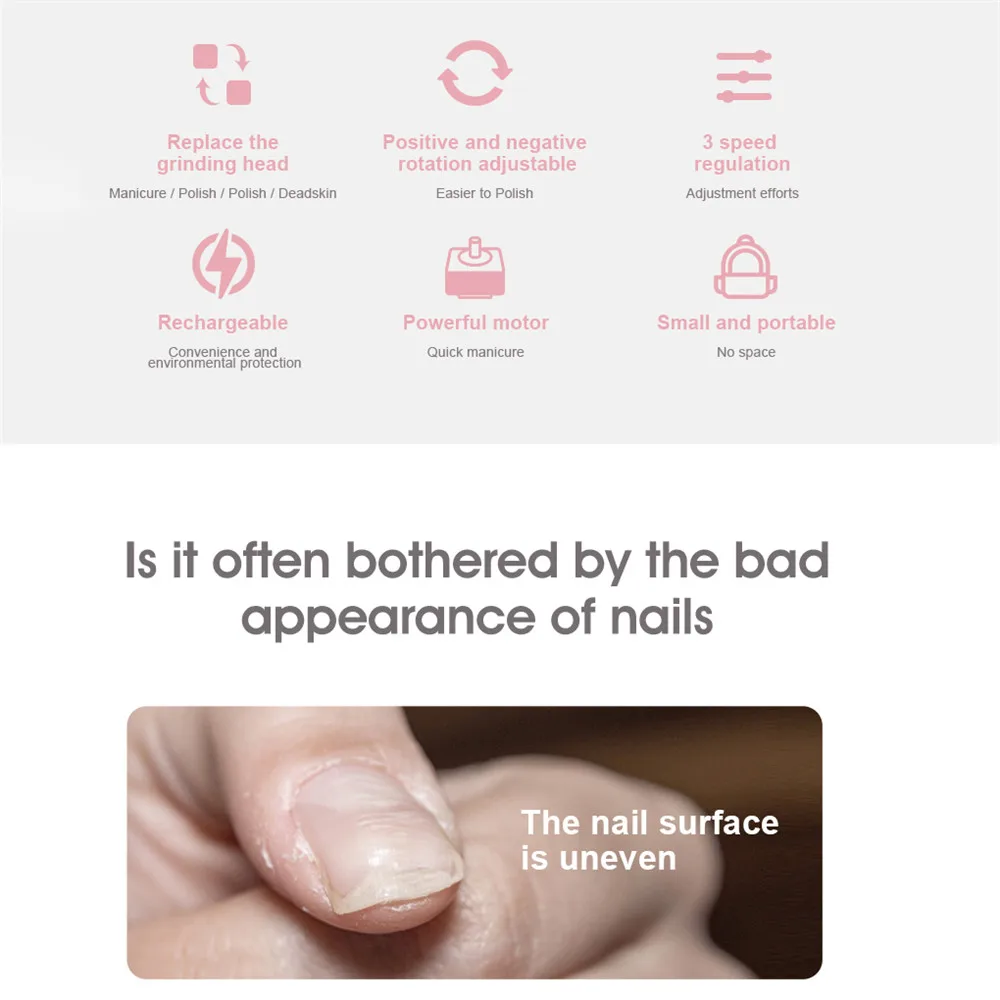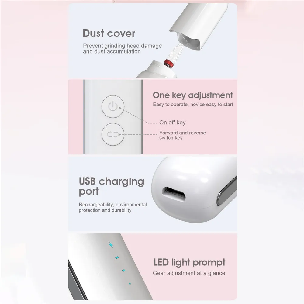 1. Мини Портативный набор сверл для ногтей, легко носить с собой.2. Подходит для профессионального использования, маникюрного салона или домашнего использования.3. Автоматическая система защиты от перегрузки.4. Для повседневного ухода за телом этот набор для маникюра и педикюра является идеальным компаньоном.5. С этими блоками выполните педикюр и маникюр в совершенстве и элегантности.6. Пилка для ногтей используется для натуральных ногтей, а также для искусственных ногтей