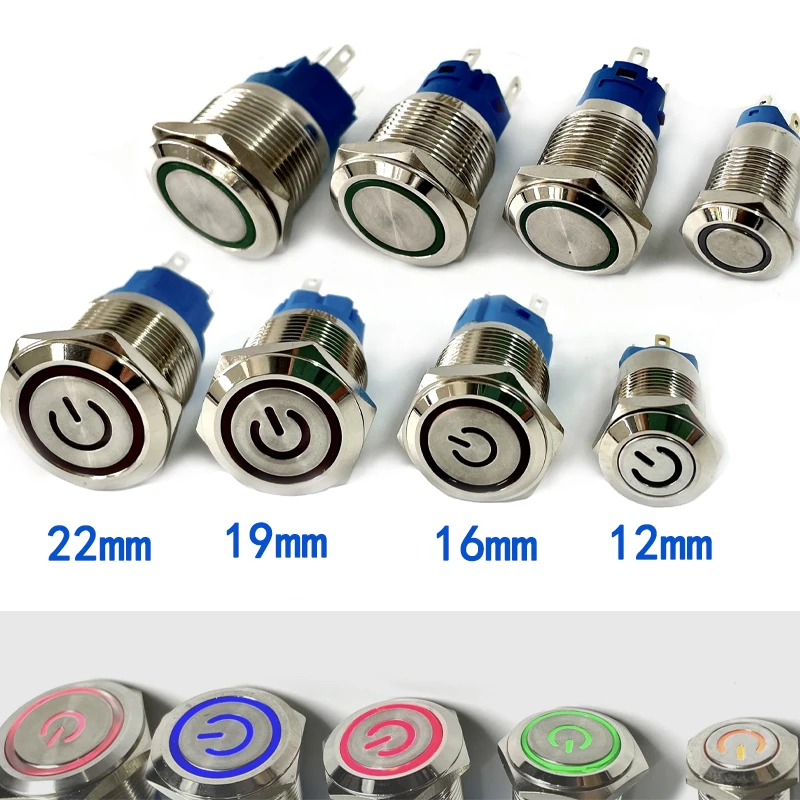 Металлический кнопочный переключатель Выключатель без фиксации, фиксированная кнопка включения и выключения питания, с подсветкой, 12161922 мм, 3 в, 6 в, 12 В, 24 В, 220 В