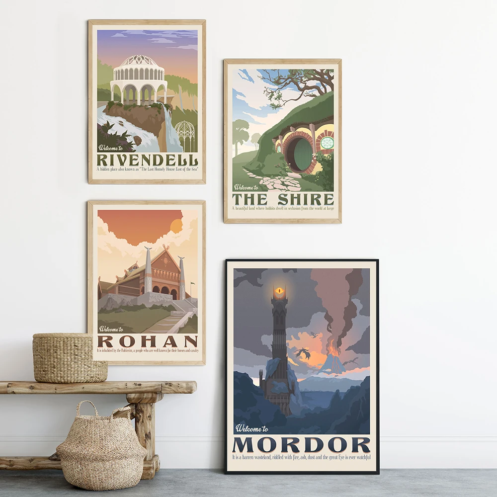 ThemeMiddle Earth Illustration Nordic Retro Travel Landscape