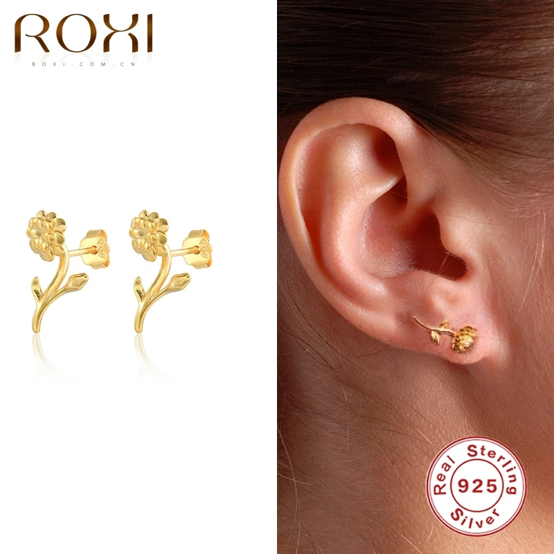 ROXI Ins Born цветок серьги для женщин, ювелирное изделие для ушей, пирсинг маленькие серьги-гвоздики ювелирное изделие, подарок на день рождения, серьги серебро 925 ювелирные изделия