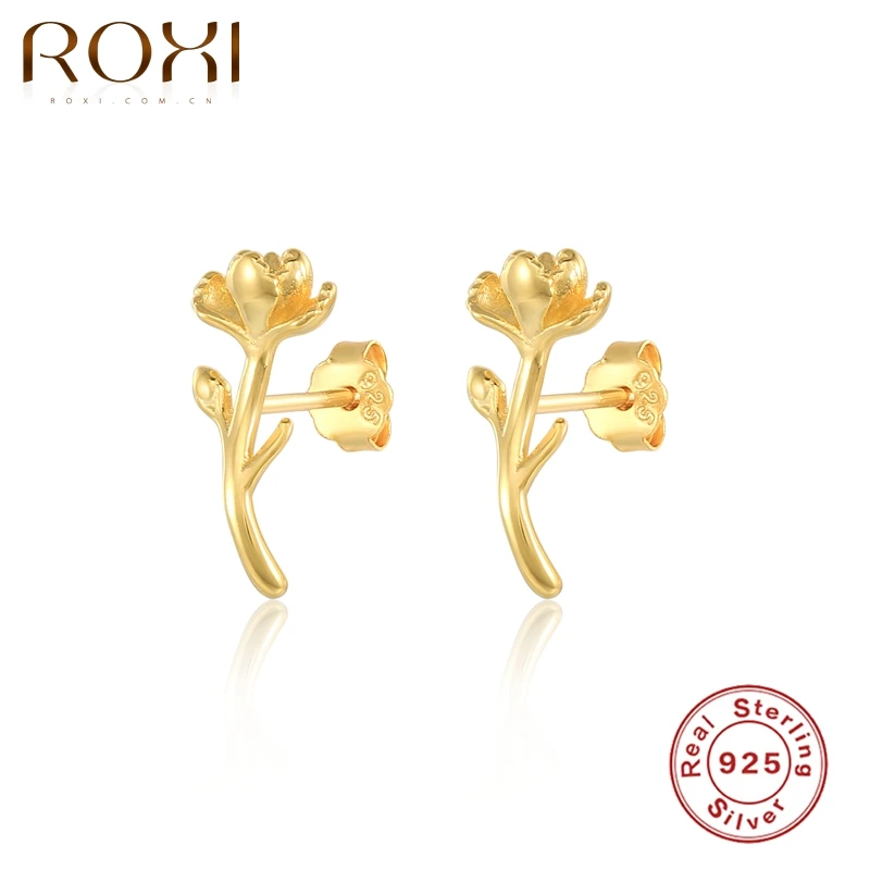 Женские серьги-гвоздики ROXI Ins Born с цветком, маленькие серьги-гвоздики, ювелирные изделия, подарок на день рождения, серебряные ювелирные изделия 925 пробы