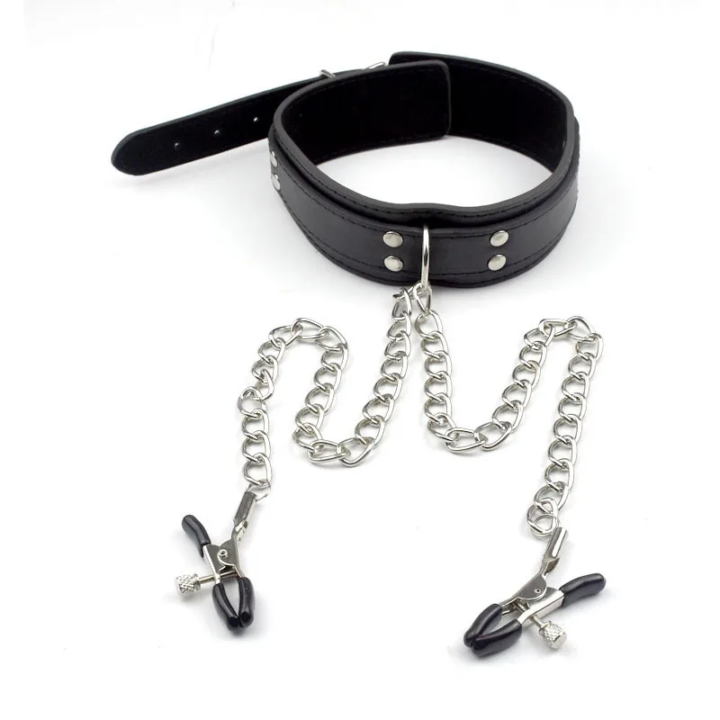 Зажим для сосков, женский кожаный ошейник с зажимом для груди, для ...