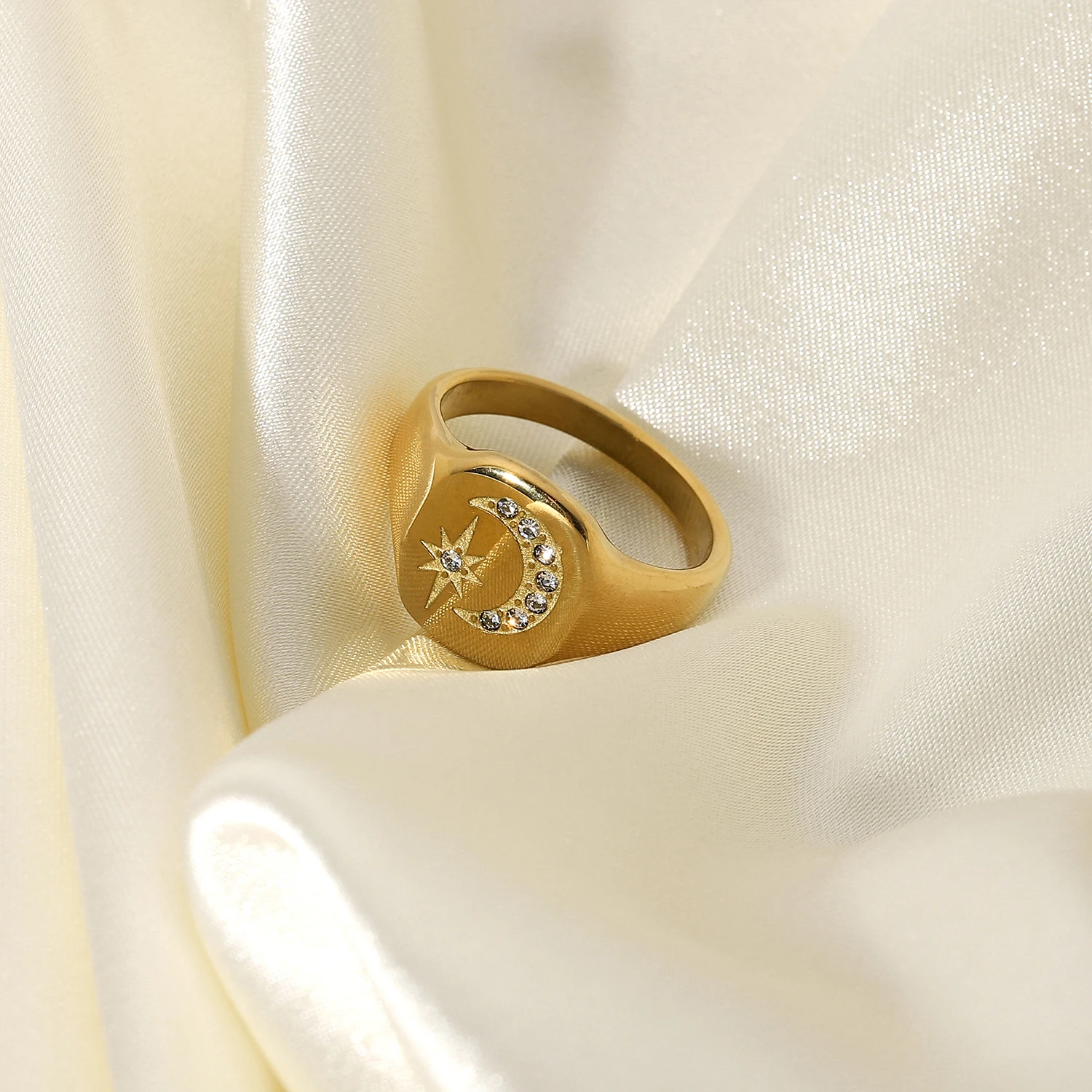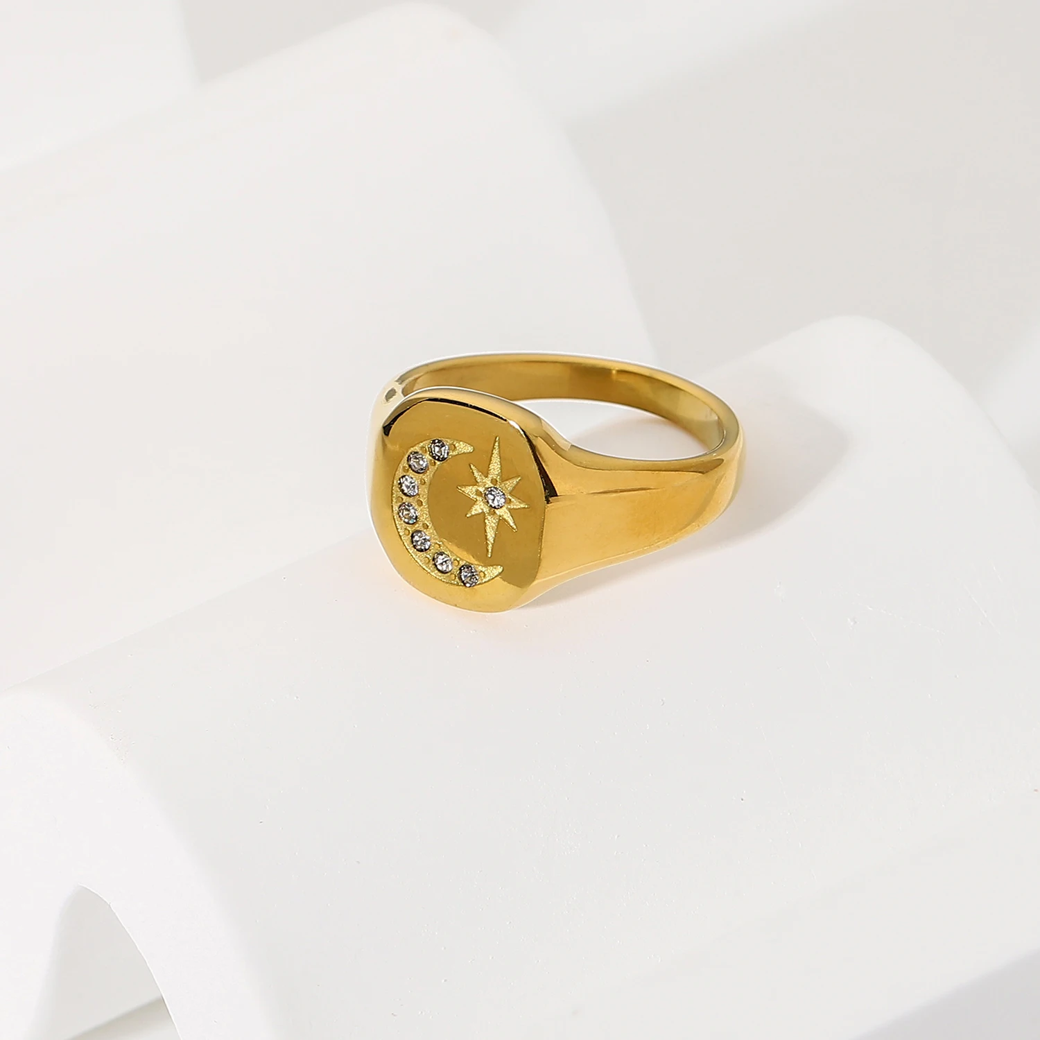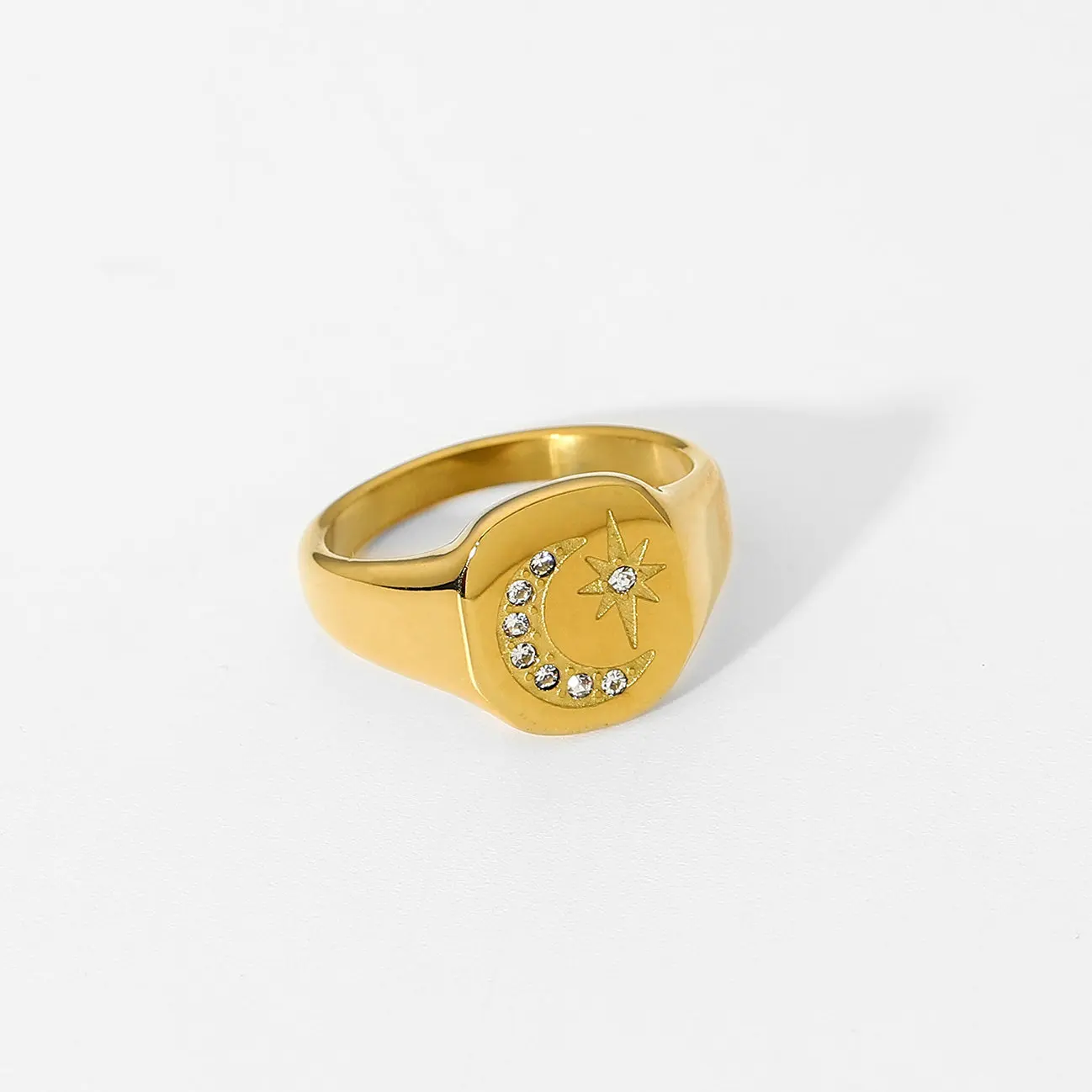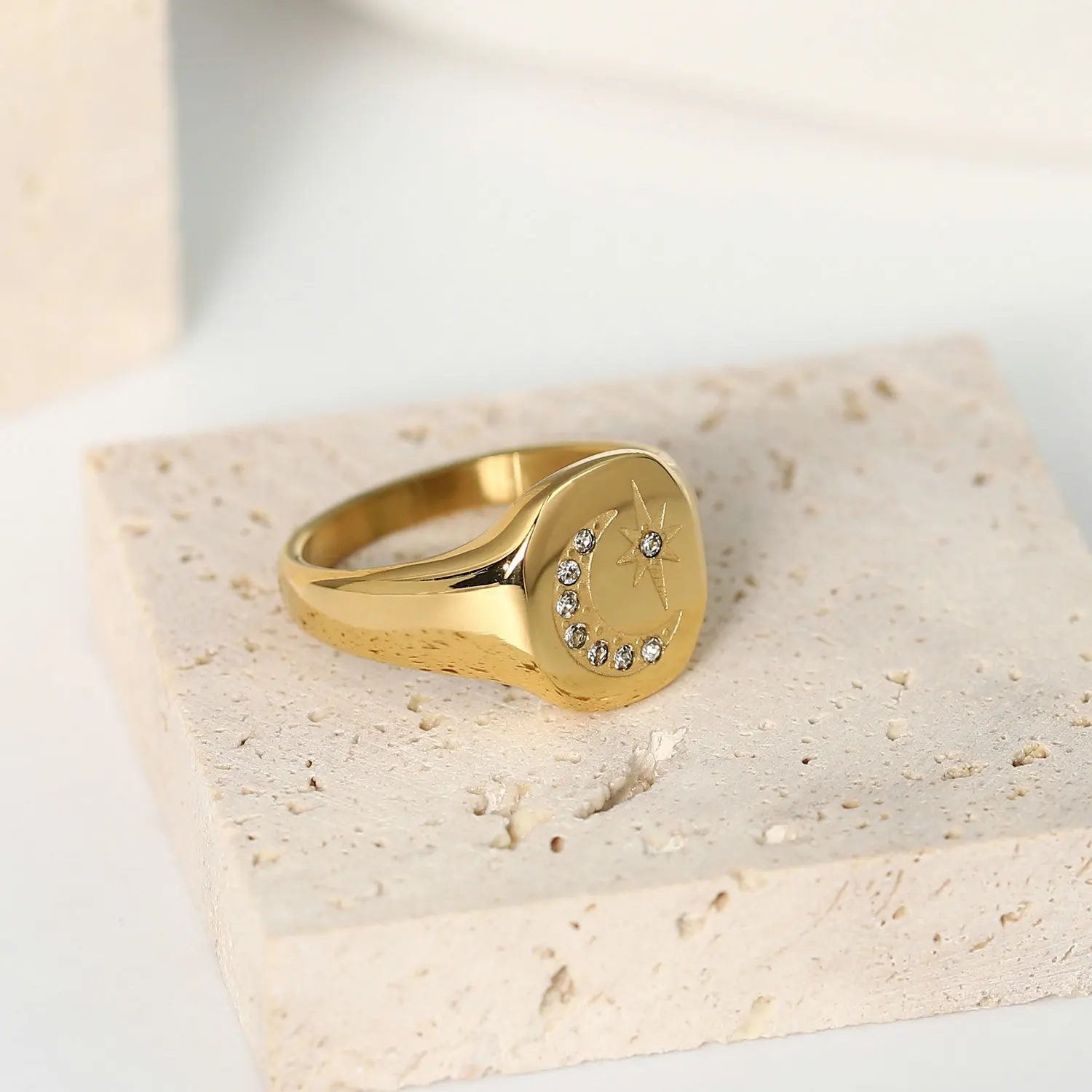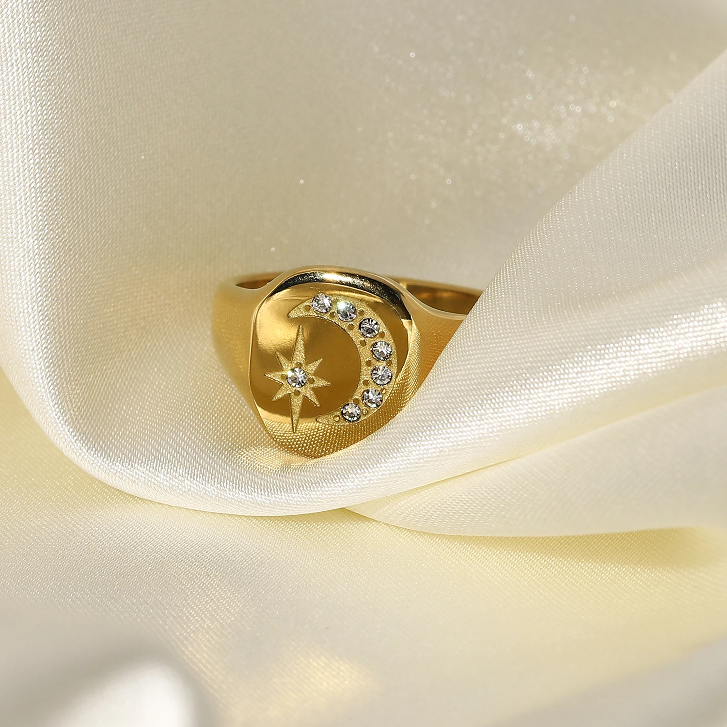 Женские позолоченные кольца из нержавеющей стали, 18 карат, с Луной и звездой, водонепроницаемые украшения