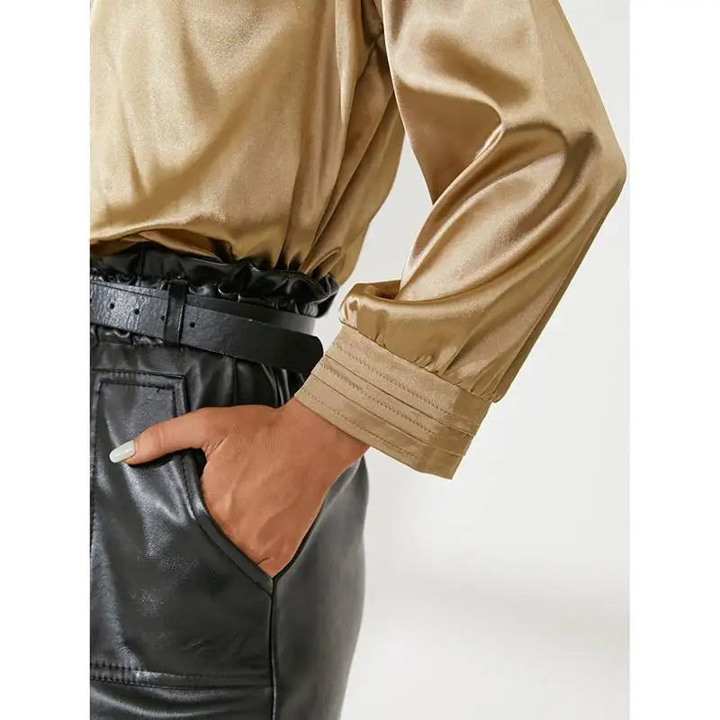 Женская атласная блузка, с высоким воротником, осенняя, 2021