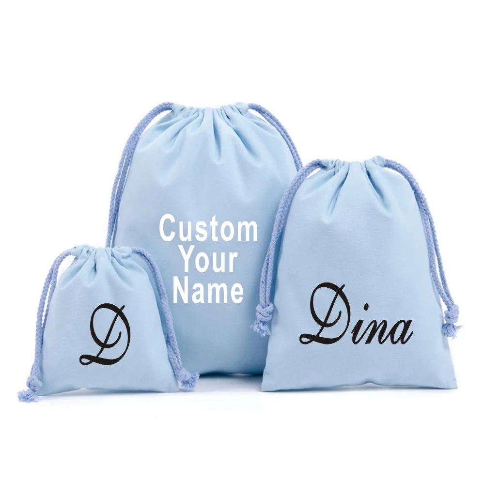 Персонализированная хлопковая сумка, рождественские подарочные сумки, экологичная синяя цветная сумка с логотипом на заказ, свадебный подарок, аксессуар, косметичка