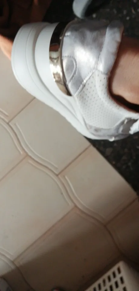 Это не так, как на фото пластина на задней части обуви не существует, это пластик, окрашенный уродливым золотом, они пахнут пластиком
