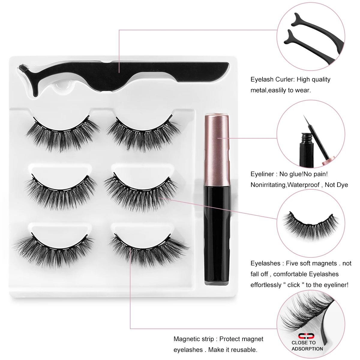 Оптовая продажа, 10 коробоккомплект, 3D норковые накладные ресницы, магнитная подводка для глаз, искусственные ресницы, водонепроницаемые Жидкие ресницы, инструменты для макияжа