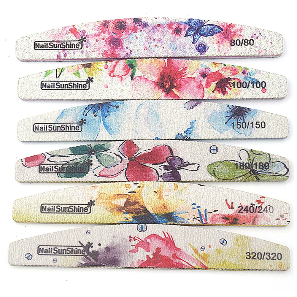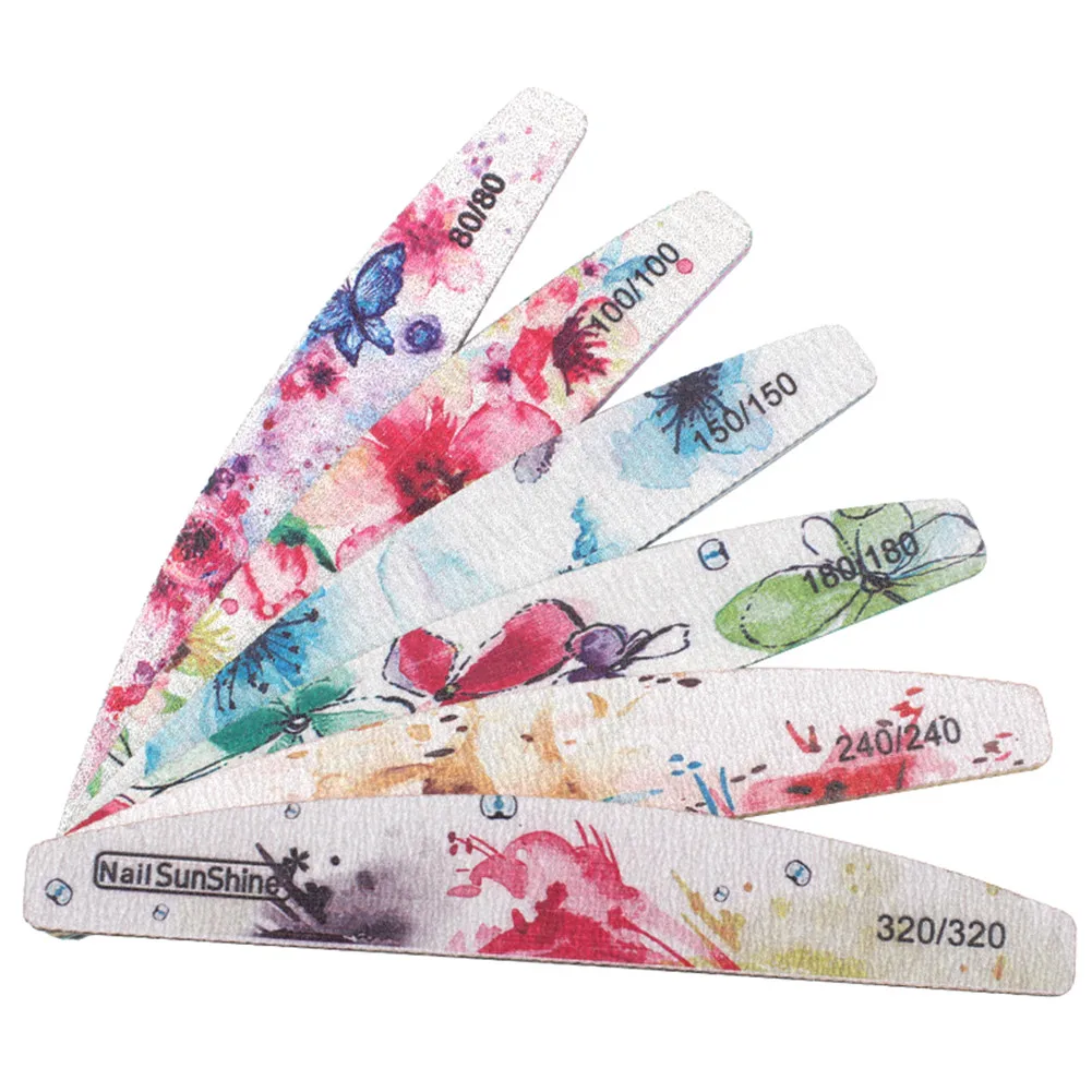 Пилка для ногтей с цветочным принтом, 80100150180240320, 6 шт.