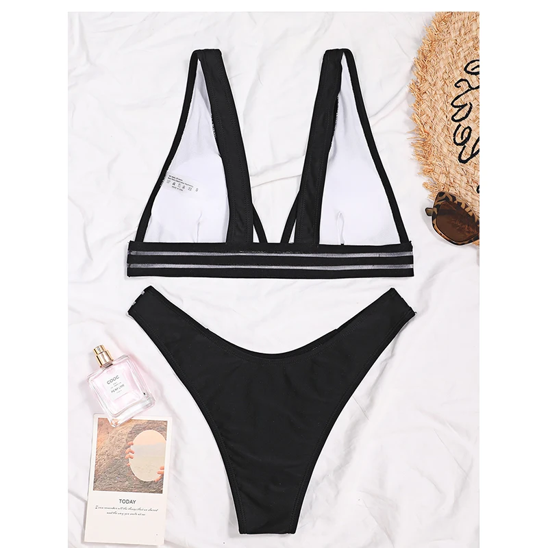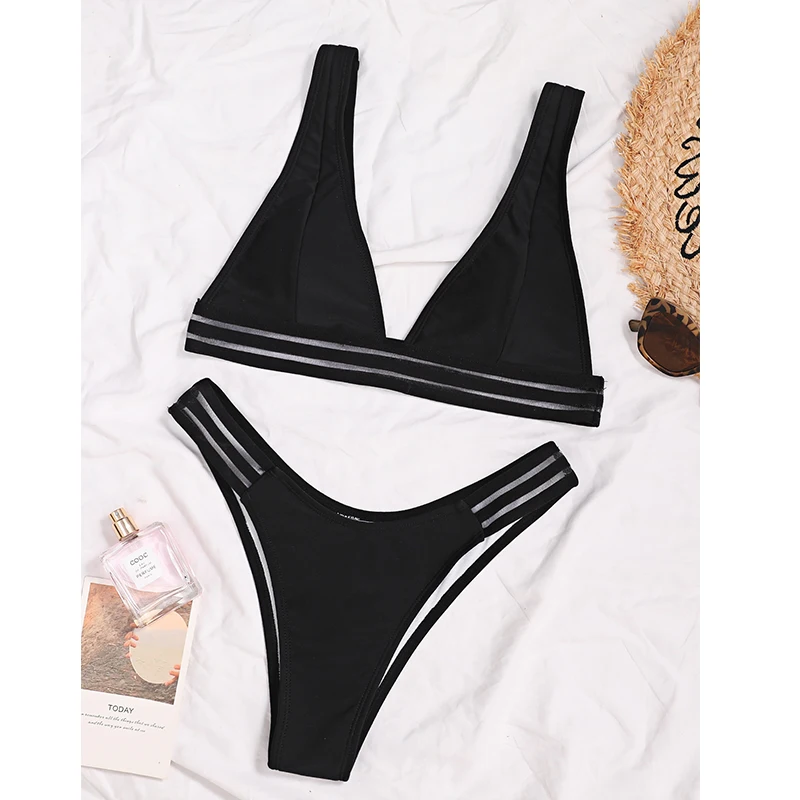 2021 сексуальный лоскутный треугольный купальник женский купальный костюм с вырезами купальник с высоким вырезом черный пляжный костюм бикини