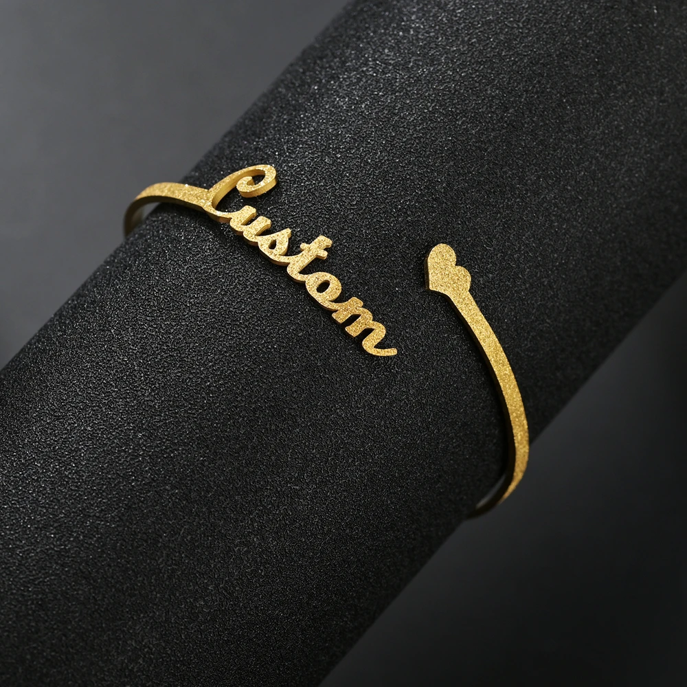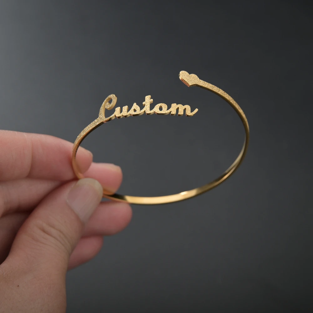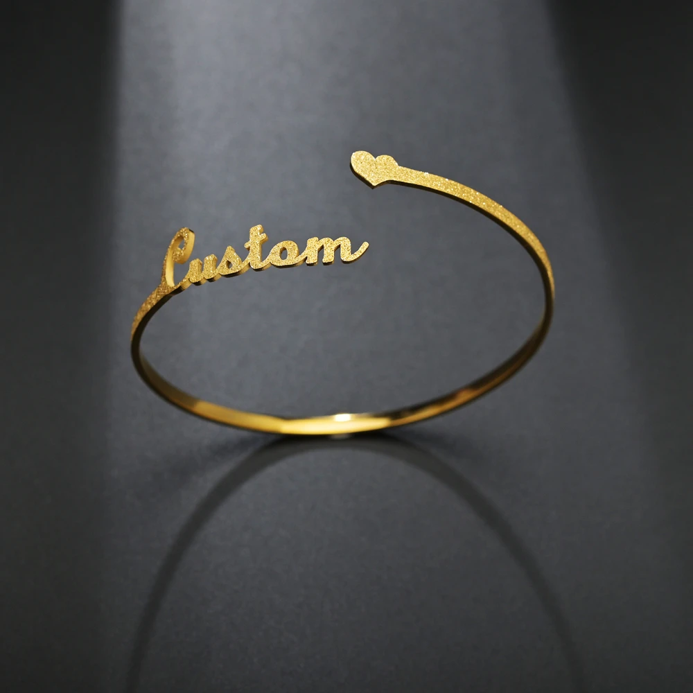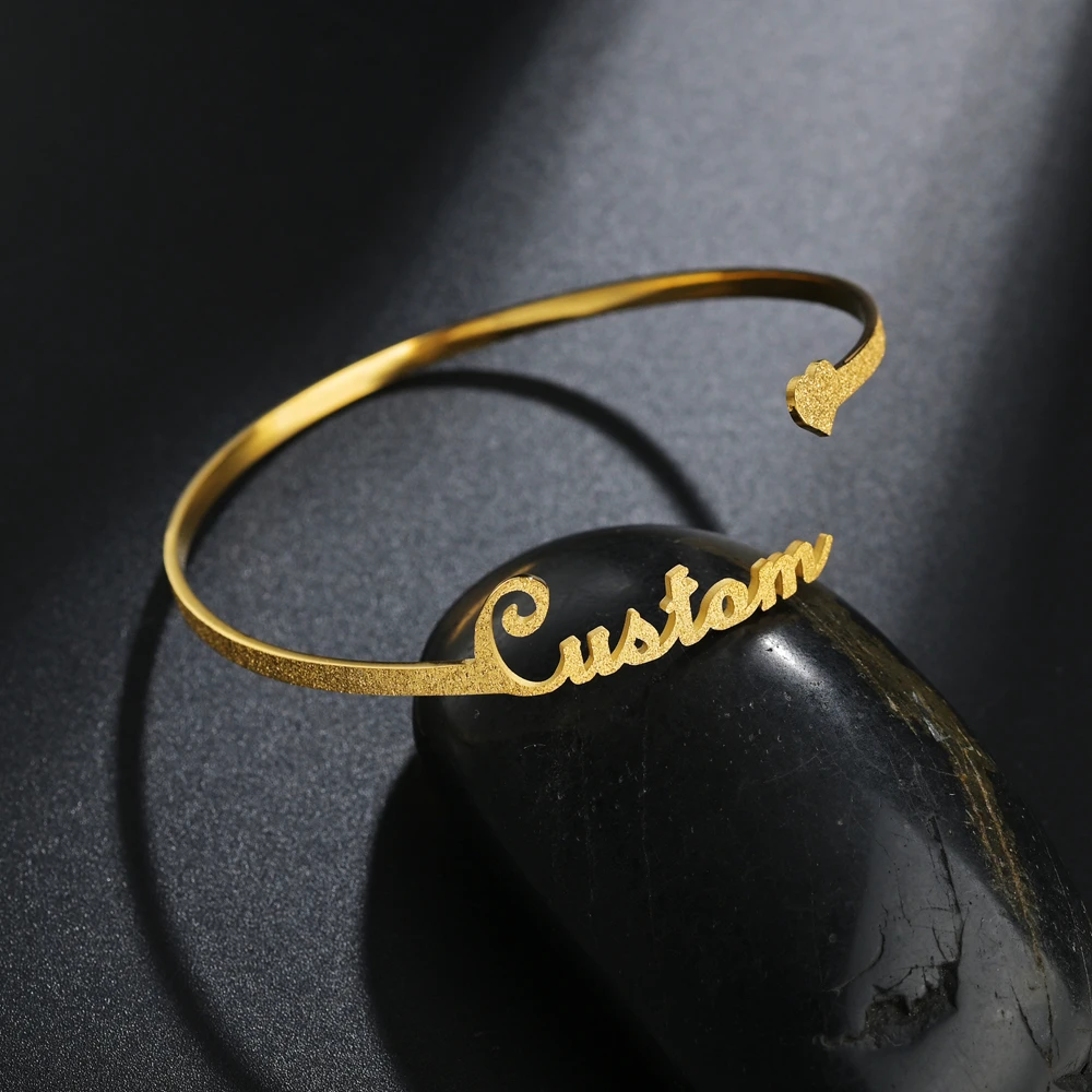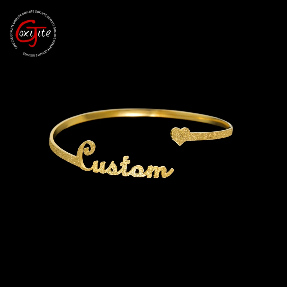 Название: Goxijite модный браслет с именем на заказ для женщин, индивидуальный регулируемый браслет с открытым сердцем, матовые браслеты с именной табличкой, ювелирное изделие, подарок