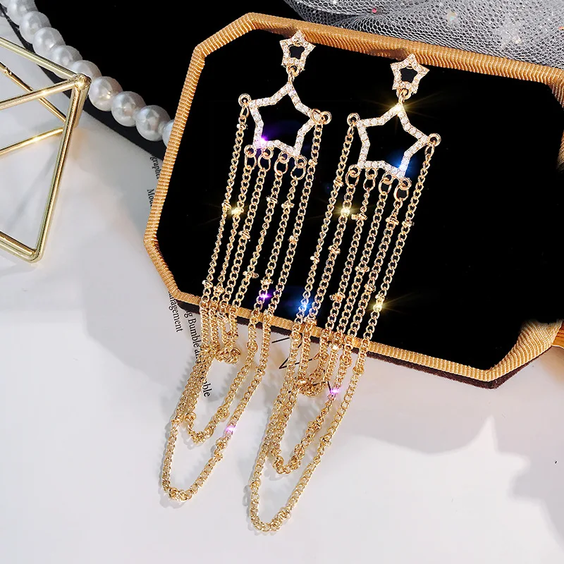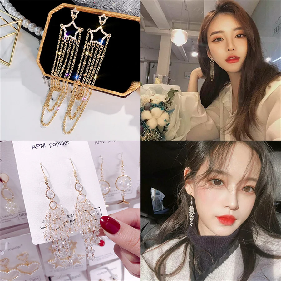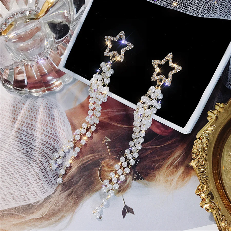 Новые корейские блестящие серьги с пятиконечной звездой и кристалла...