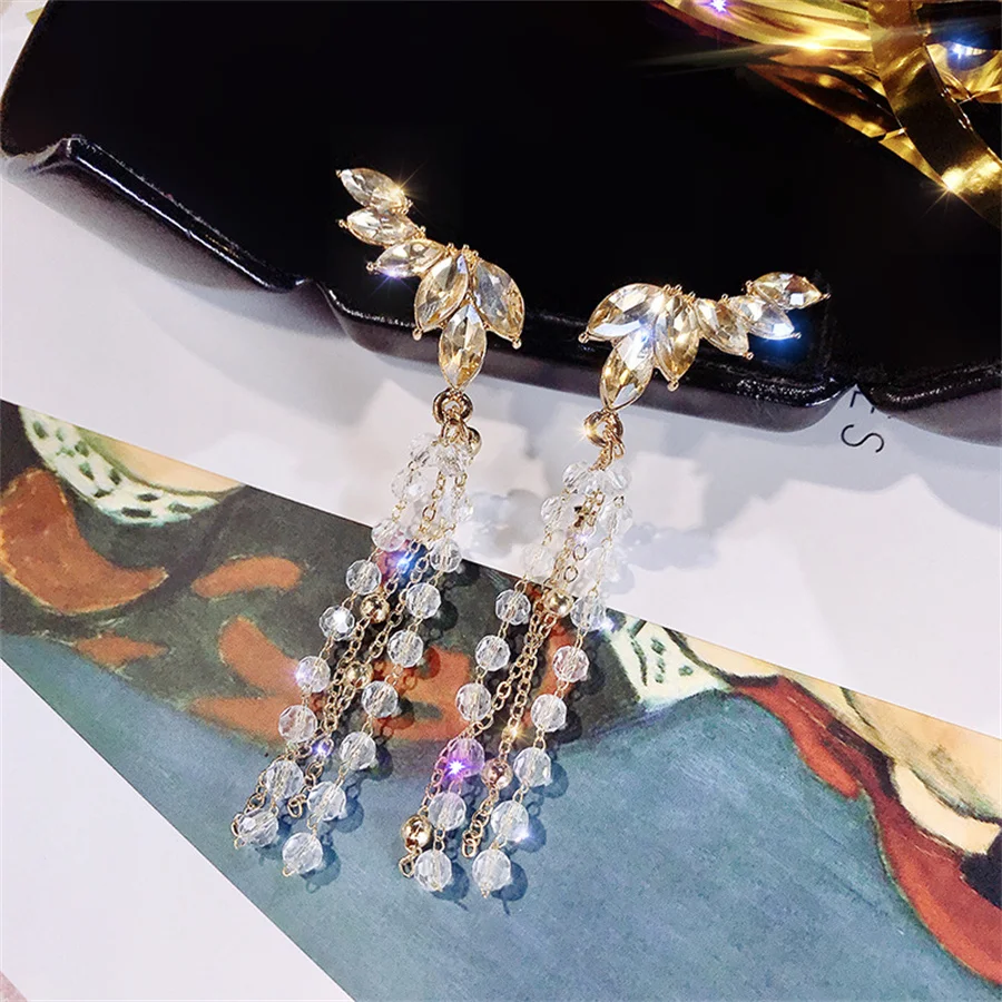 Новые женские длинные серьги-кисточки модные цветы акриловые серьги с кристаллами висячие серьги Роскошные брендовые ювелирные изделия оптом
