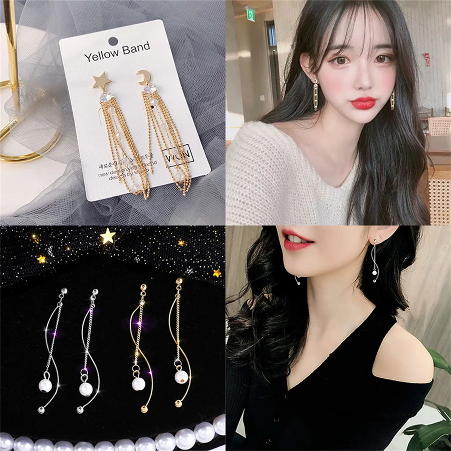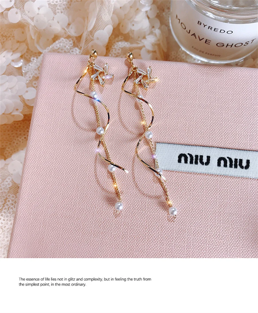 Женские серьги с искусственным жемчугом, длинные геометрические сер...