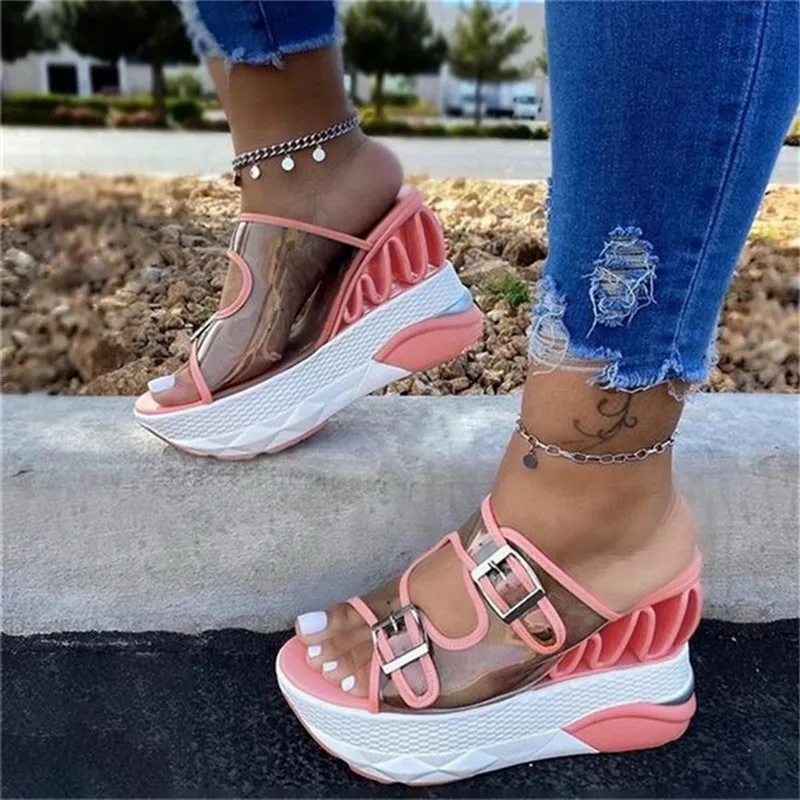 Босоножки на танкетке женские, удобные сандалии на платформе, открытый носок, высокий каблук, повседневная спортивная обувь, лето 2021
