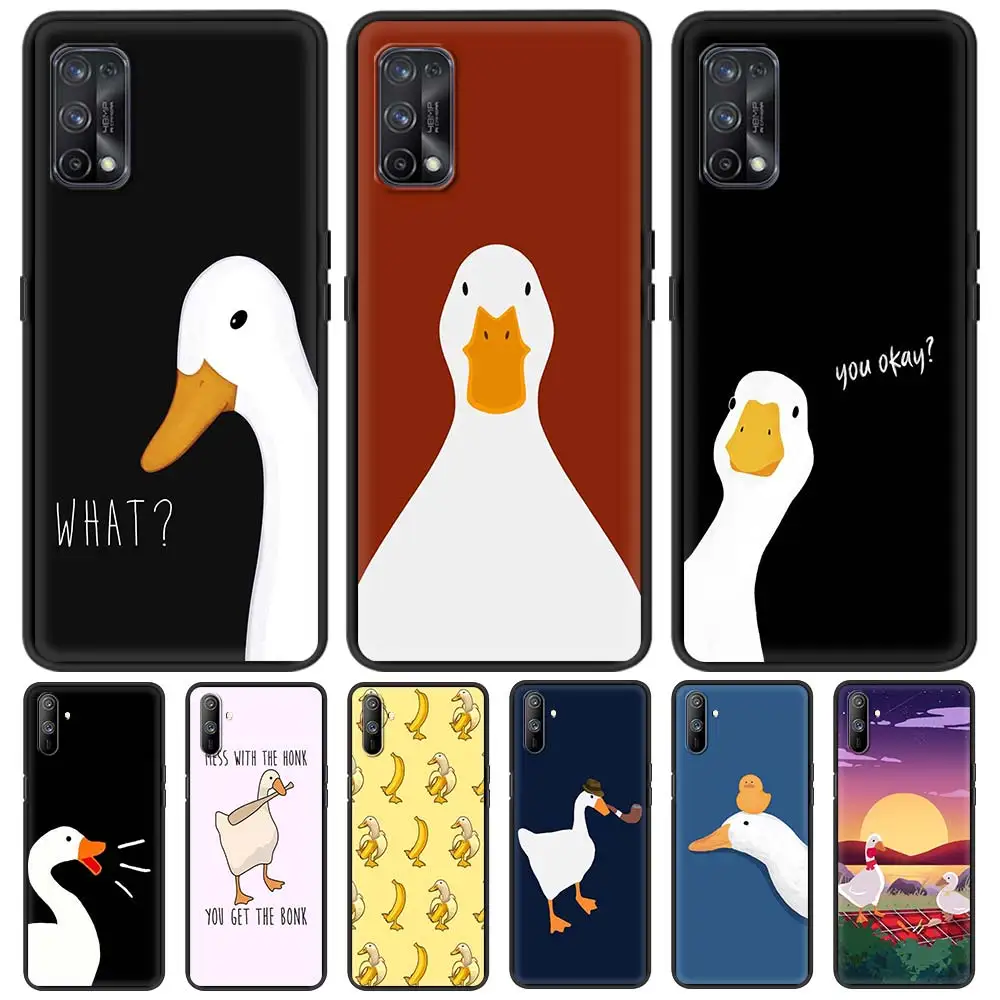Для Realme 6 7 Pro C3 5 XT C15 8 чехол для телефона X50 C11 GT Neo C20 C21 7i C25 Q2 черный мягкий силиконовый ударопрочный чехол для забавные милые комплекты детской одежды с изображением уточки из мультфильма для капа