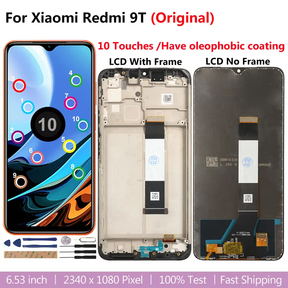 Оригинальный ЖК-дисплей для Xiaomi Redmi 9 T, сменный экран с рамкой, 10 касаний, ЖК-дисплей для Redmi 9 T 9 T J19S M2010J19SG с инструментом
