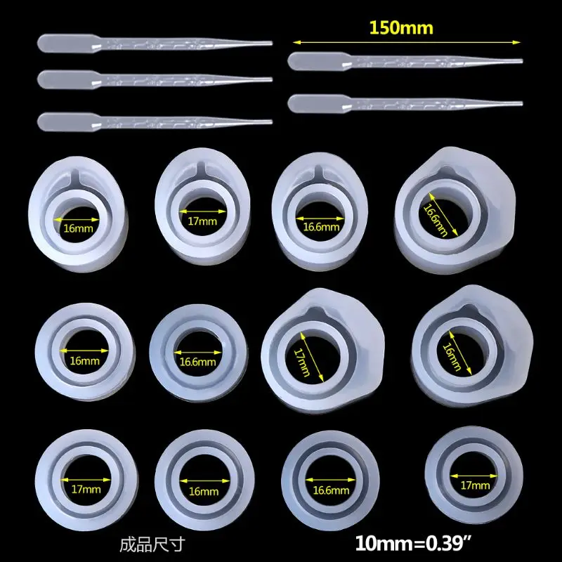 17 шт. эпоксидная смола комплект силиконовые формы кольцо формы; 3 размера; Флакон-капельница, сделай сам, ювелирное изделие кольца 1616.617 мм ручной работы подарки Jy10 20 Прямая поставка