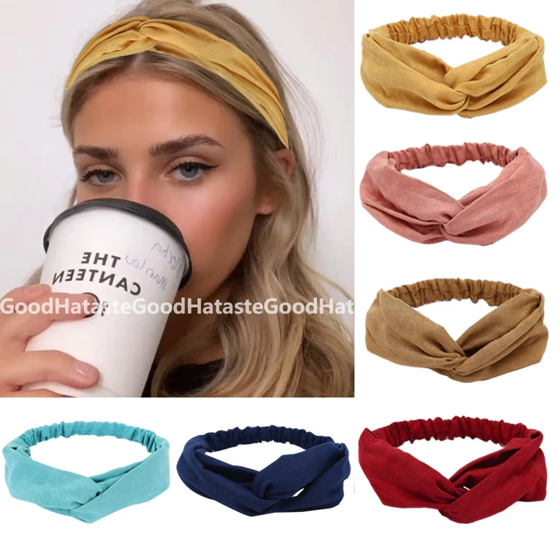 Повязка для волос женская с узлом, эластичная чалма мягкая одноцветная лента в винтажном стиле, летний аксессуар для волос