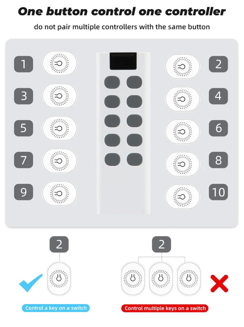 6. Поддержка 2-способ управления: Может использоваться в сочетании с 2-полосная переключатель беспроводного управления, беспроводной, а затем подключен к дому