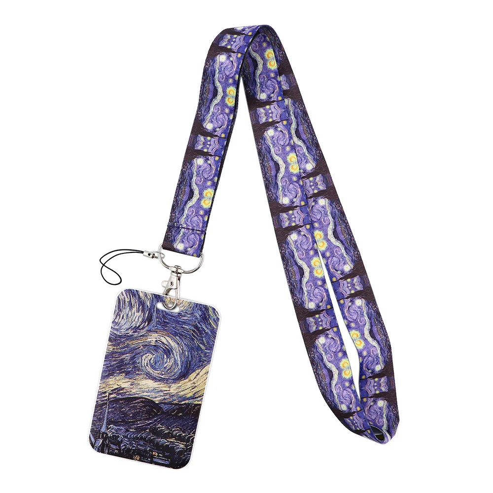 YL135 Van Gogh шнурки для ключей с изображением звездной ночи, бейдж Для кредитных карт, брелок для ключей, Студенческая Женская дорожная сумка для банковских карт