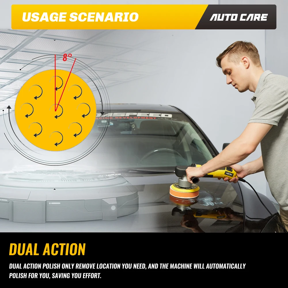 Машинка Для Полировки Автомобиля AUTOCARE-это полировщик двойного действия для свежей руки, который быстро и легко удаляет царапины и закручивается, чтобы вернуть краску к зеркальному блеску с минимальной усталостью и максимальным комфортом.