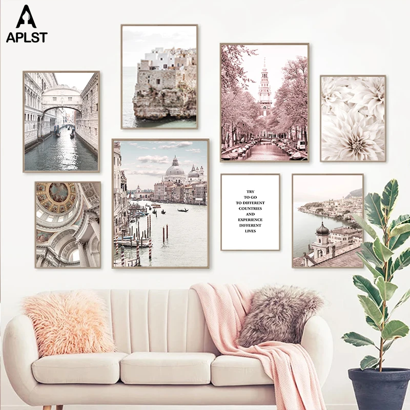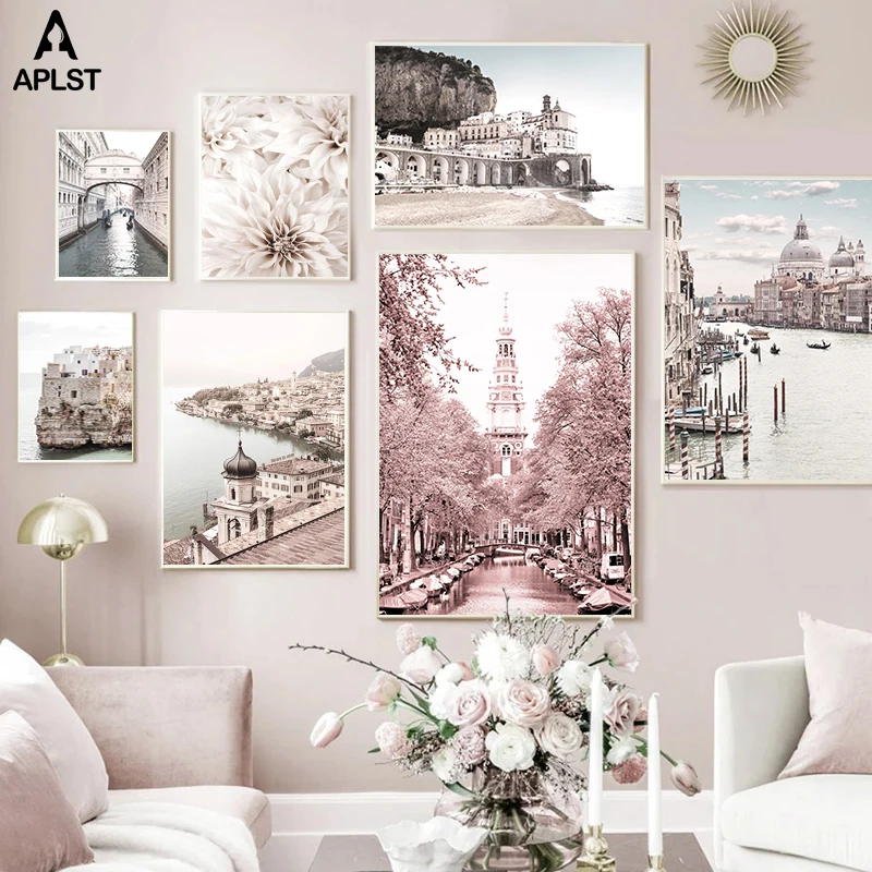 Скандинавский пейзаж, настенные художественные рисунки на холсте и плакаты, Венеция, лодка, собор пуля, атрани, Пляжная живопись, Современная морская картина, домашний декор