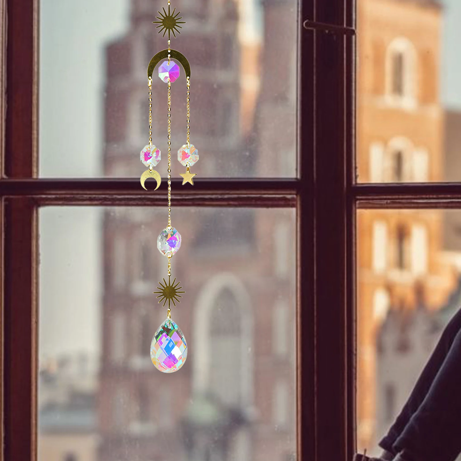 Хрустальная звезда луна кулон Радуга светоотражающие красочные буси...