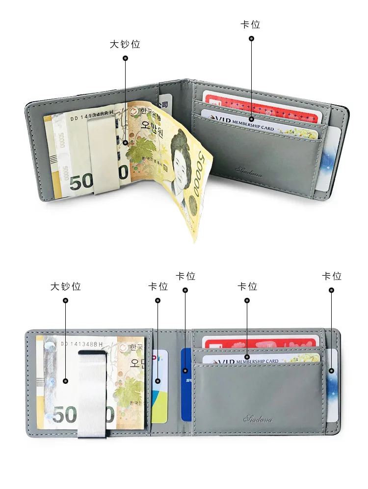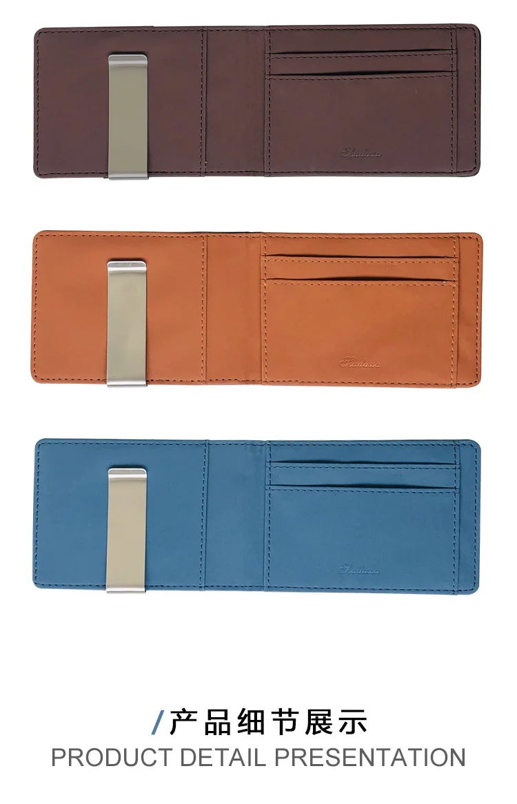 Лидер продаж, модный однотонный мужской тонкий двойного сложения, кожаный кошелек с металлическим зажимом, Женский кошелек для удостоверения личности, кредитных карт, держатель для наличных
