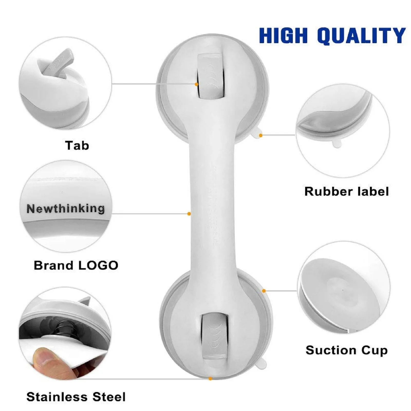 Особенности:Высококачественная душевая ручка с присоской stronghold.Прочная конструкция присоски работает на непористой плоской поверхности, даже на плитке, стекле и акрилке.Изготовлен из пластика и ребристых ручек.Очень легко установить и удалить wth без повреждений.Идеально подходит для травмированных, пожилых людей и детей ясельного возраста.Резиновая присоска идеально подходит для плотного захвата во влажной и скользкой среде.Можно легко взять в любом месте во время путешествия.Обеспечивает дополнительный баланс в скользкой ванне и предотвращает скольжение и падения.Простая установка, без инструментов или бурения.Использование:Эта ручка поддержки ванной комнаты даст вам немного дополнительной помощи, когда вам это нужно больше всего.С простым щелчком рычага мощные двойные чашки для сужения мгновенно зафиксируются на стороне вашей ванны или душевой стены, обеспечивая вам надежное сцепление для дополнительной безопасности и стабильности при входе или выходе ванна или душ.Посылка:1 x рукоятка для захвата