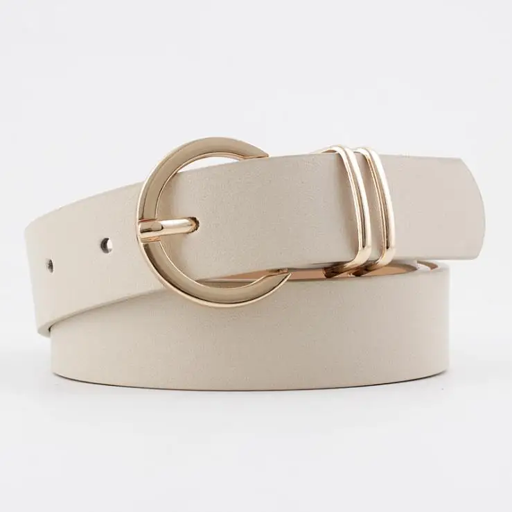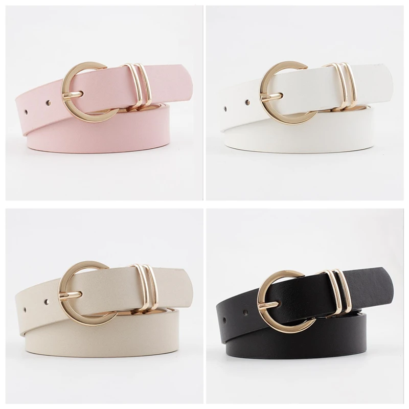 Ремень кожаный женский с круглой пряжкой, Модный классический пояс ...