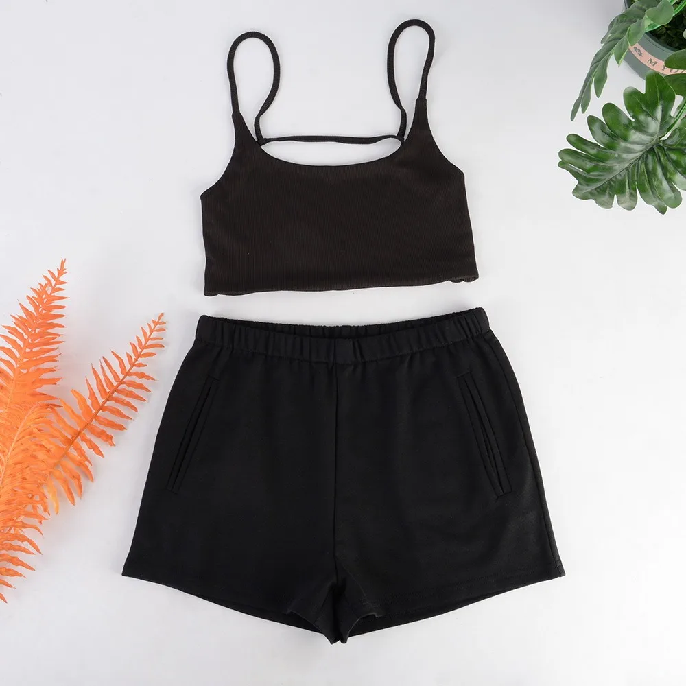 Женский однотонный спортивный костюм, комплект из двух предметов, кроп-топ и шорты на завязках, лето 2021