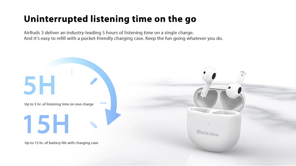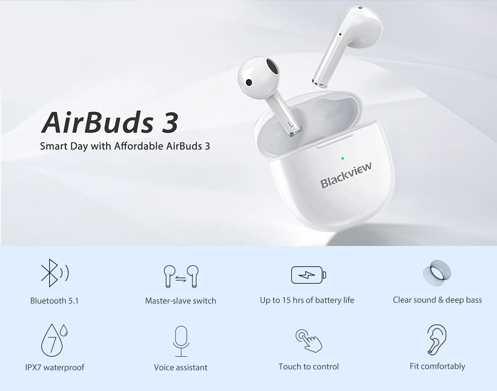 Blackview AirBuds 3 сенсорный наушник с зарядным боксом, поддержка вызова, основной-Ведомый Переключатель, голосовой помощник, наушники