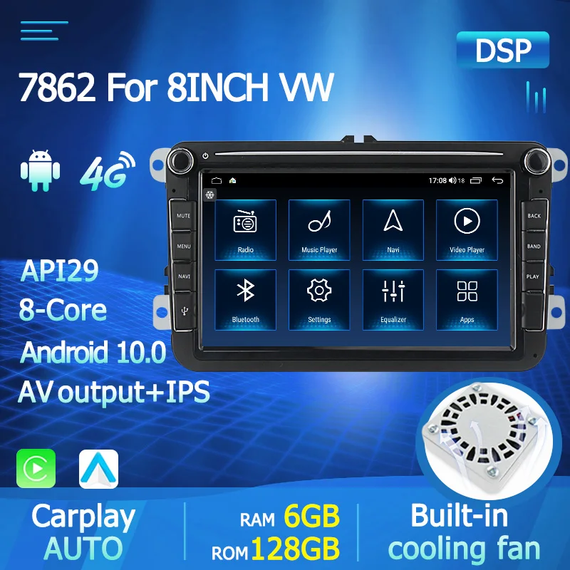 Автомобильный радиоприемник DSP 6 + 128 ГБ, Android 10, для VW Golf 5 6 Jetta MK5 MK6 Tiguan CC Polo Passat 6 GPS 8 ", головное устройство DSP RDS BT DVD плеер 4G
