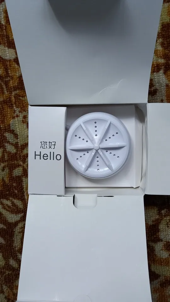 доставка очень быстрая, меньше 3-х недель в Украину. выглядит как на картинке. новый, в упаковке. упаковка помялась т.к. положили в пластиковый пакет без пупырки, надеюсь будет работать. включила в электросеть без воды, 4 режима. А - крутится по часовой стрелке, В - против часовой стрелки, С гудит и вибрирует, и не крутится, D- только гудит, не вибрирует и не крутится. Крутится без воды слабенько. Думаю пару трусиков и носочки сможет постирать. Как вариант для поездки к морю. довольна, рекомендую!