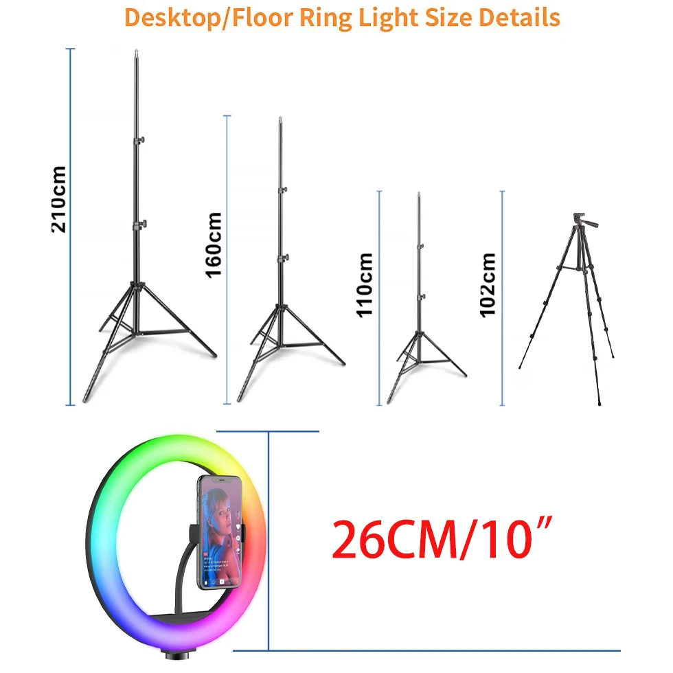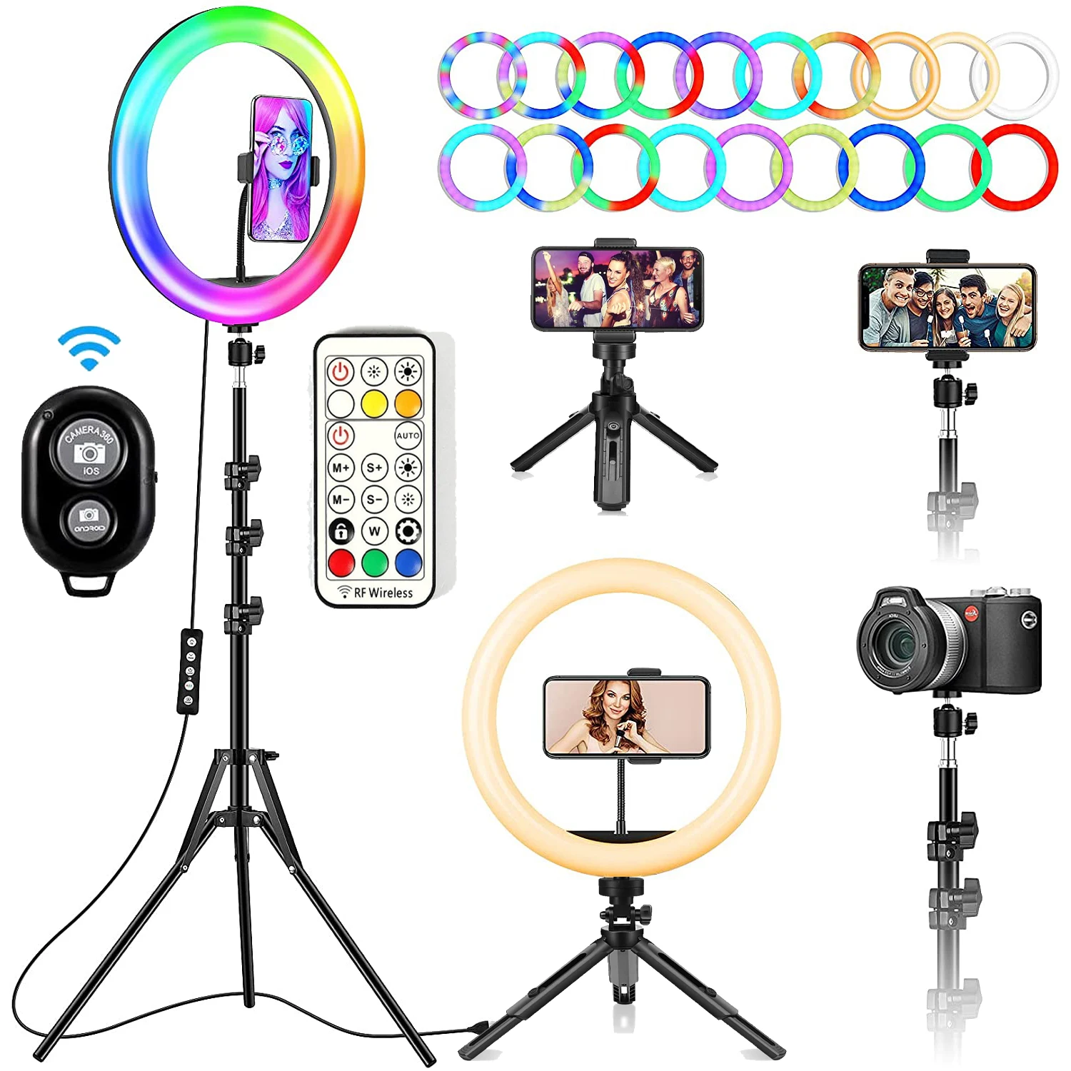 Кольцевой светильник RGB для селфи, со штативом, светодиодный кольцевой светильник