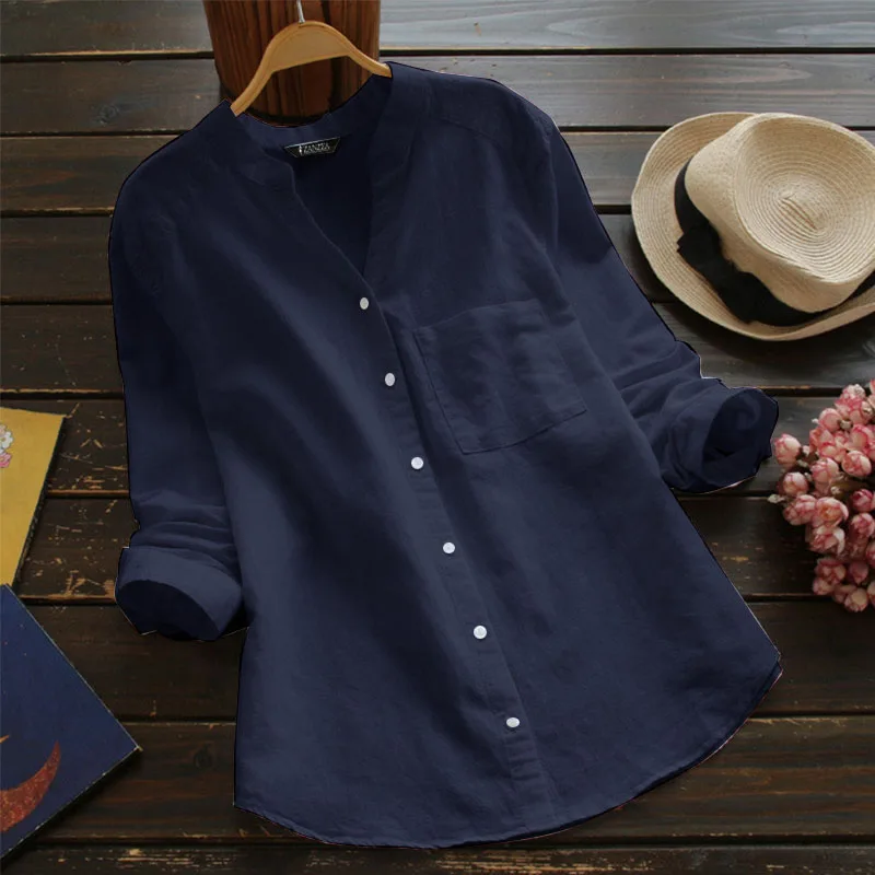 Блузка женская из хлопка и льна, с V-образным вырезом и длинным рук...