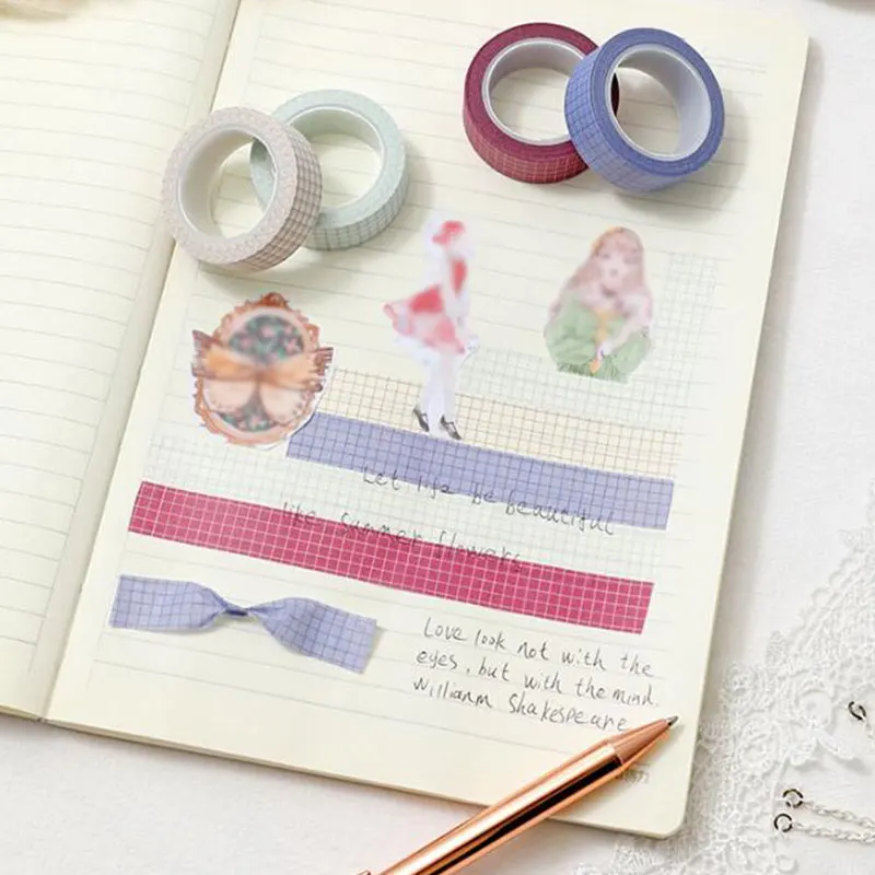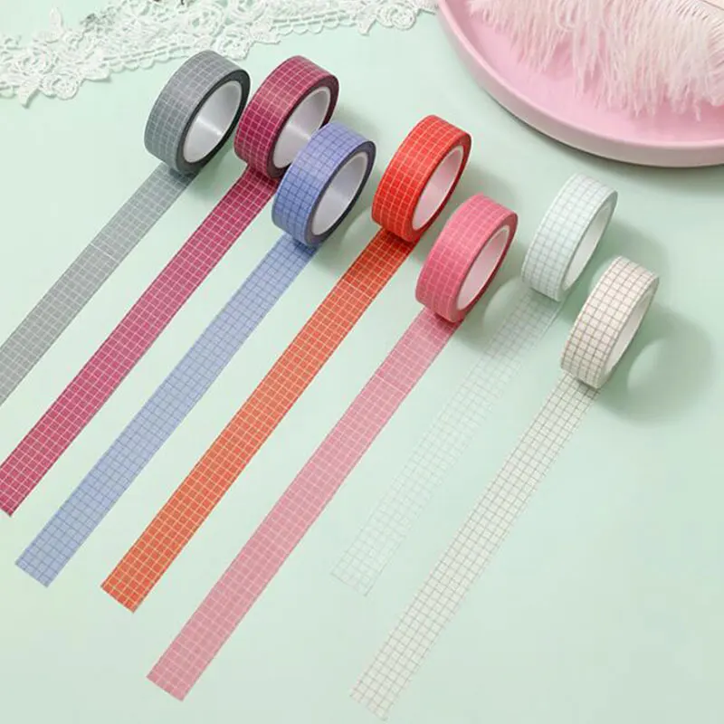 Однотонная клейкая лента, милая клейкая лента в клетку, декоративна...