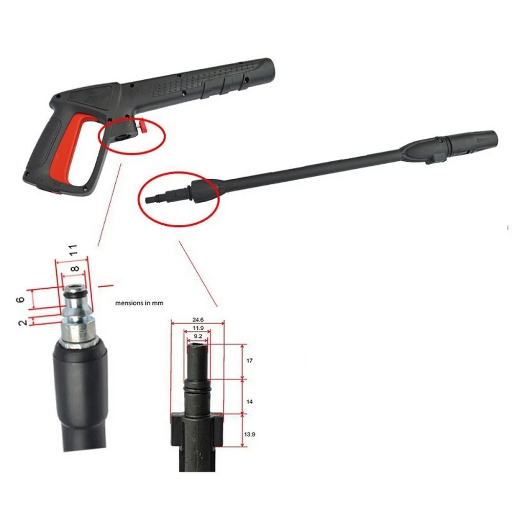 Особенности:-Он используется в качестве подходящих аксессуаров для моек под давлением, для очистки автомобиля, механического оборудования, полов, стен и т. д.-Простая работа, просто нужна стиральная машина, без воздушного компрессора, вы можете легко иметь профессиональный эффект струи пузыря машины.Подходит для:1. Некоторые из AR Blue Clean, Black & Decker, Michelin, Interskol (старые) Мойки под давлением2. Bosche AQT 33-10, 33-11, 35-12, 37-13, 40-12, 42-13, 45-14, EASY AQUATAK 110, EASY AQUATAK 120, ADVANCE AQUATAK 135, UNIVERSAL AQUATAK 135, ADVANCED AQUATAK 150, ADVANCED AQUATAK 160Характеристики:Тип ручки: Тип пальцаТип распыления воды: вентиляторОсобенности: распыление воды под высоким давлениемМаксимальное давление: 120 бар/1740PSIЦвет: красный + черныйМатериал: пластикРазмер: 53*3,6*3,6 смПосылка:1 * водяной пистолет высокого давления (ручка пистолета + удлинитель + насадка)1 * водопровод высокого давления (5 м/6 м/8 м, опционально)