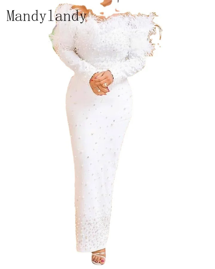 Женское платье с перьями Mandylandy, облегающее однотонное платье с...