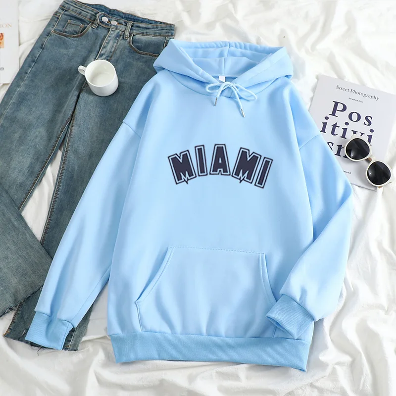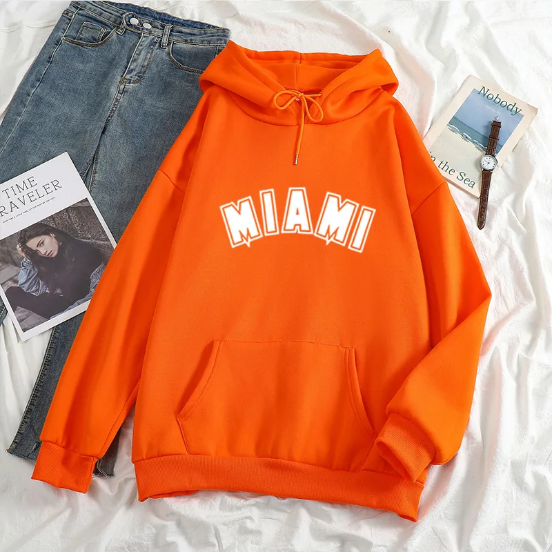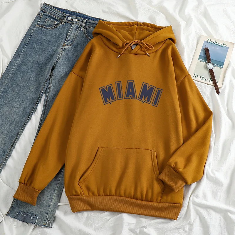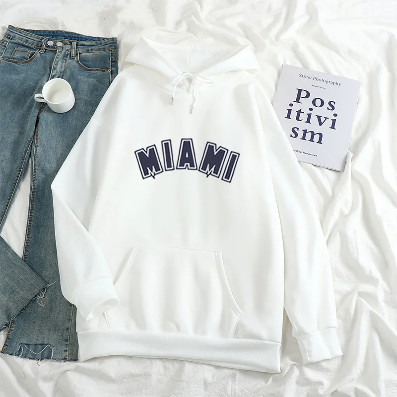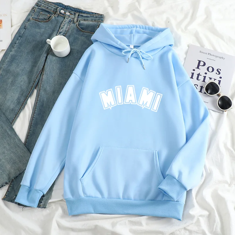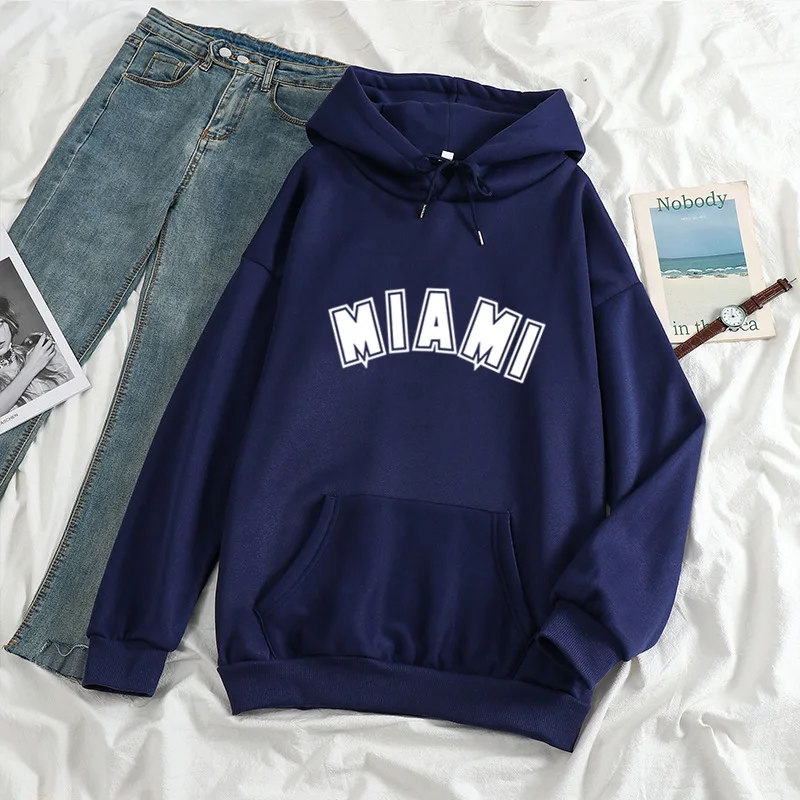 Худи мужскоеженское с надписью Майами, повседневный Универсальный свитшот с длинным рукавом в стиле хип-хоп, уличная одежда унисекс, свободный флисовый Топ в стиле K-POP