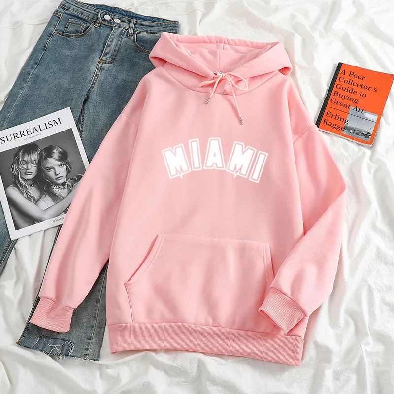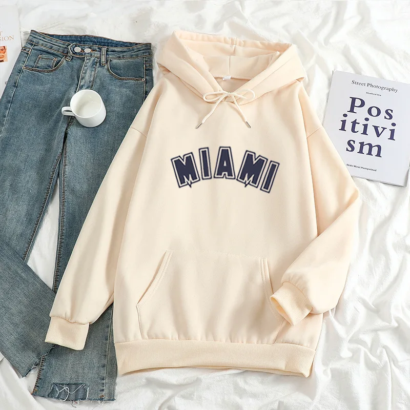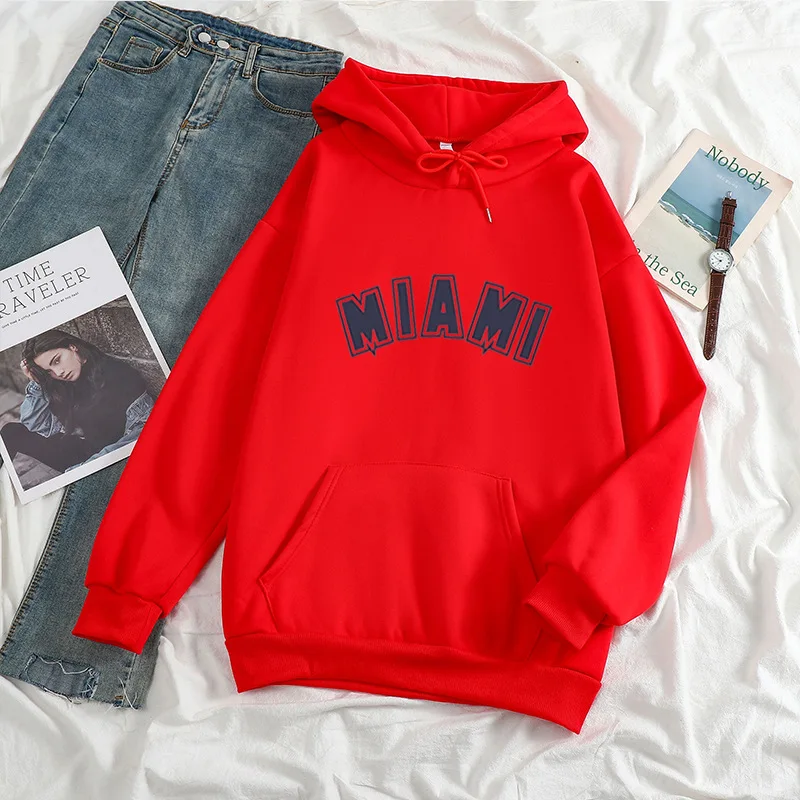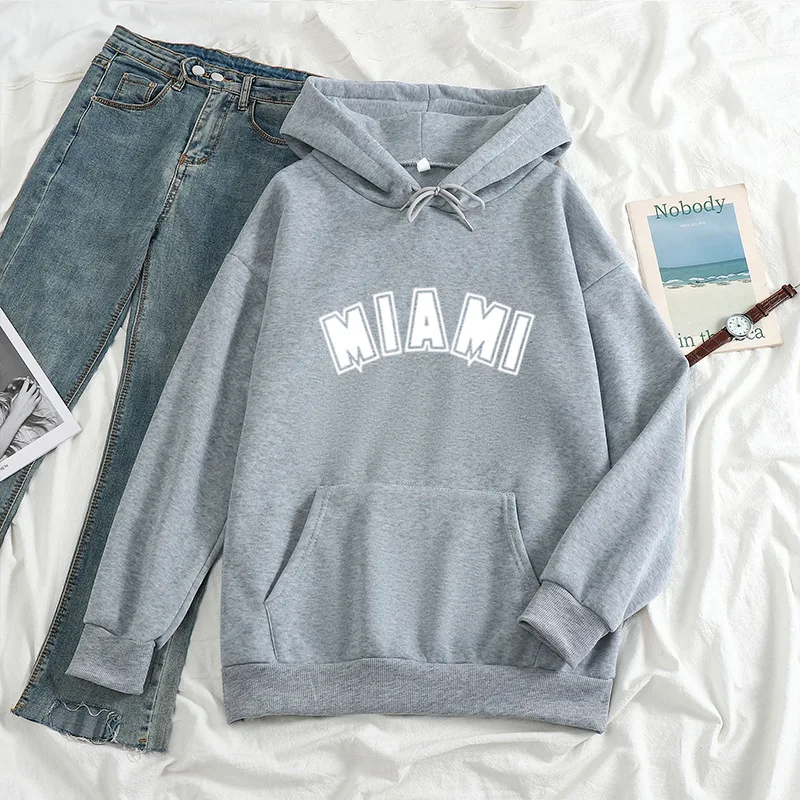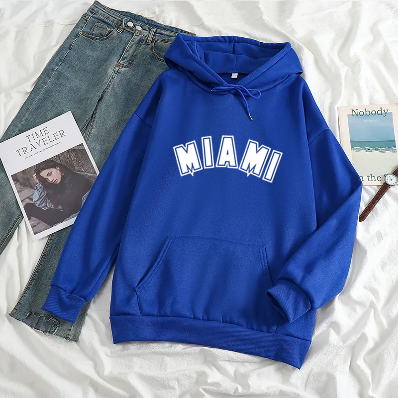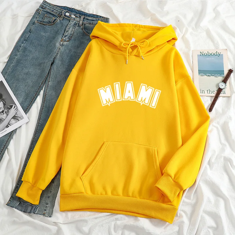 Худи мужскоеженское с надписью Майами, повседневный Универсальный свитшот с длинным рукавом в стиле хип-хоп, уличная одежда унисекс, свободный флисовый Топ в стиле K-POP