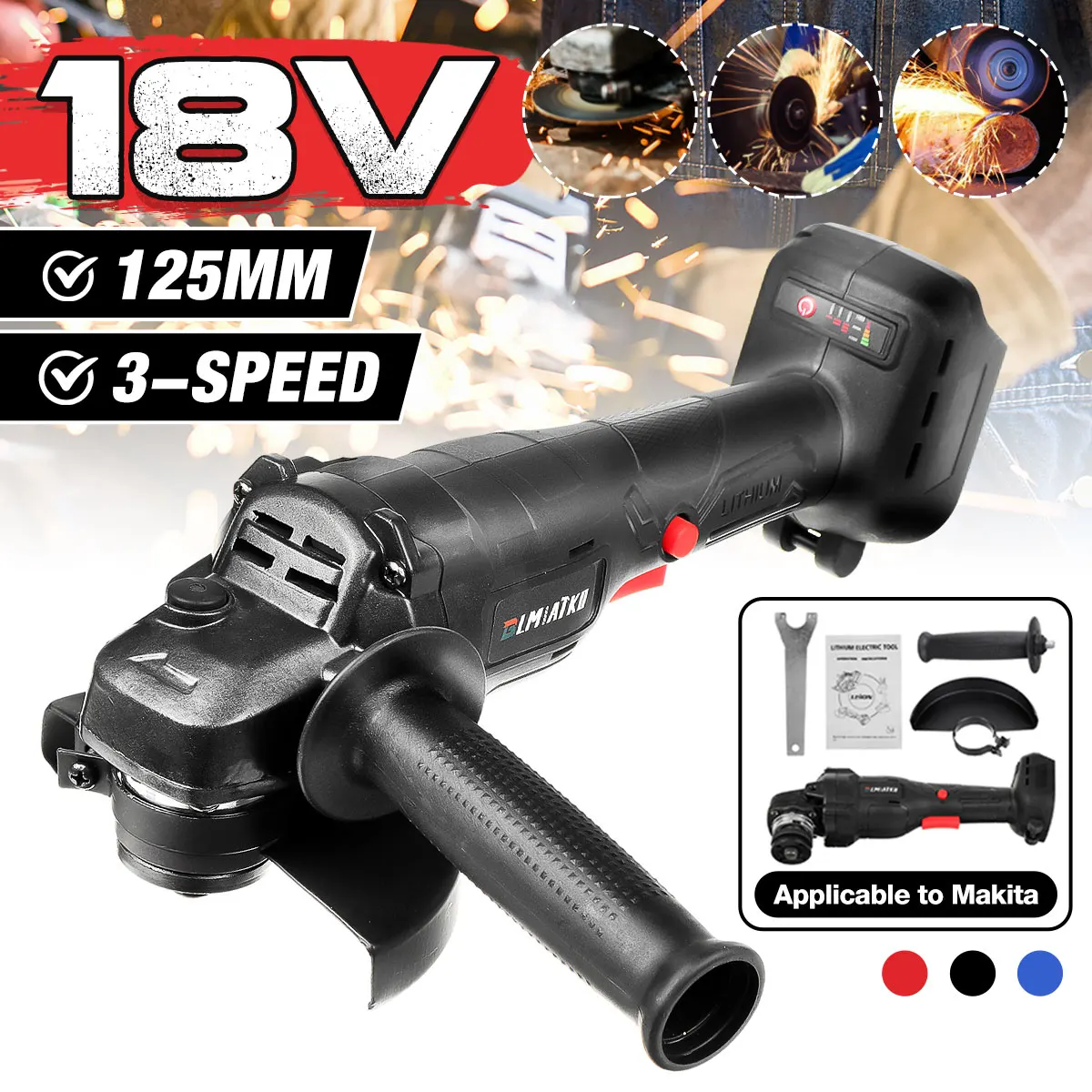 Беспроводная угловая шлифовальная машина BLMIATKO, 800 Вт, 18 в, 100 мм, 125 мм, 3 скорости