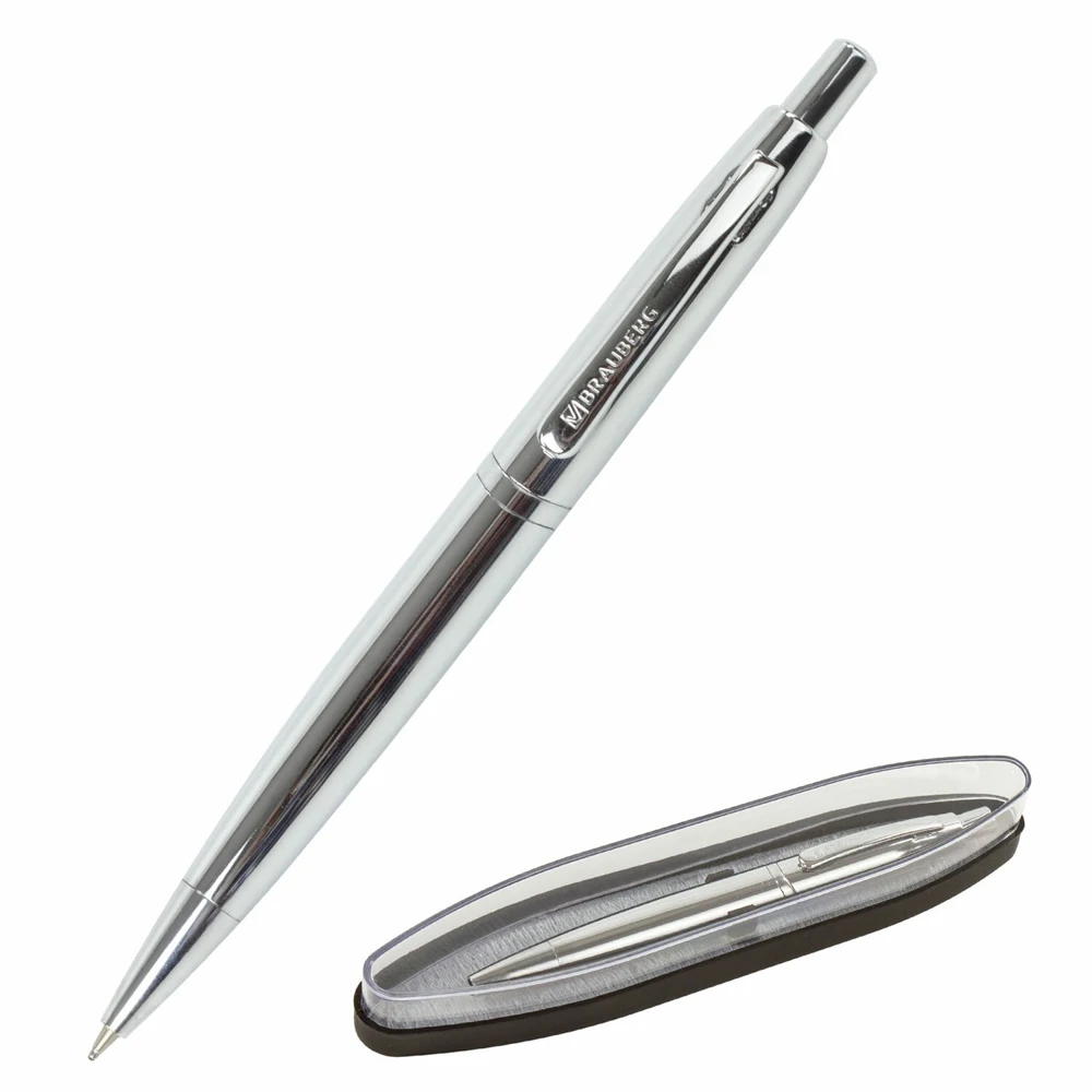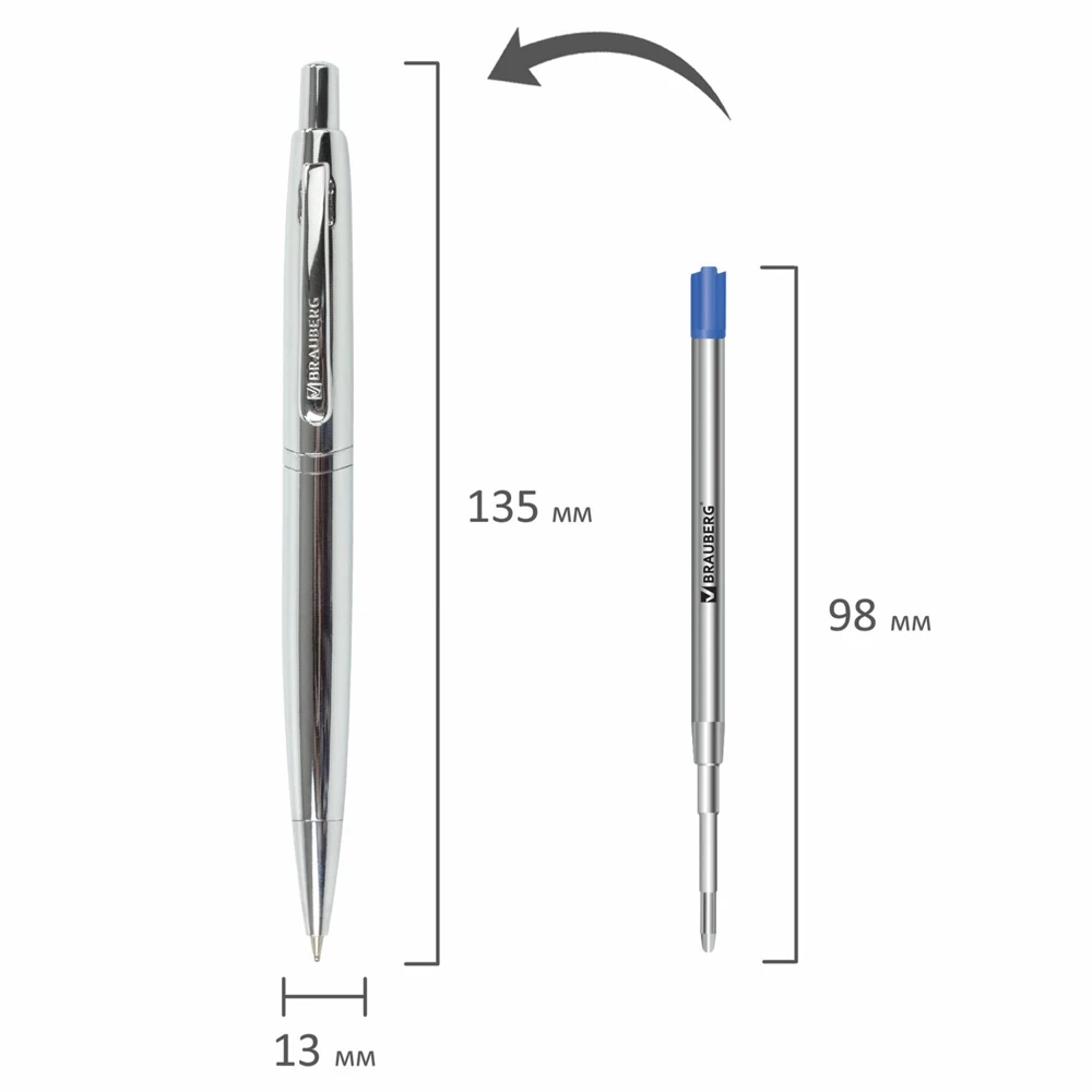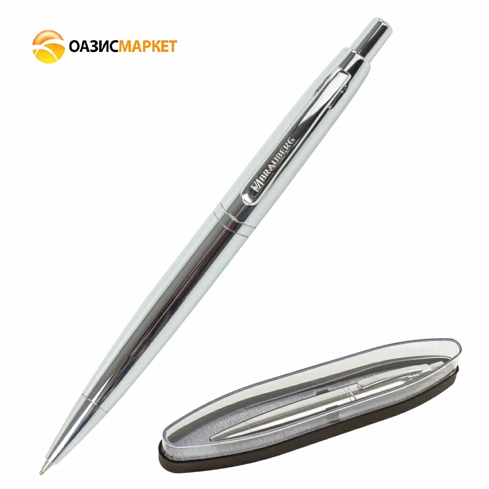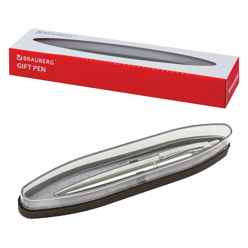 Ручка подарочная шариковая BRAUBERG Opera, линия письма 0,5 мм, синяя, корпус серебристый с хромированными деталями, 143486