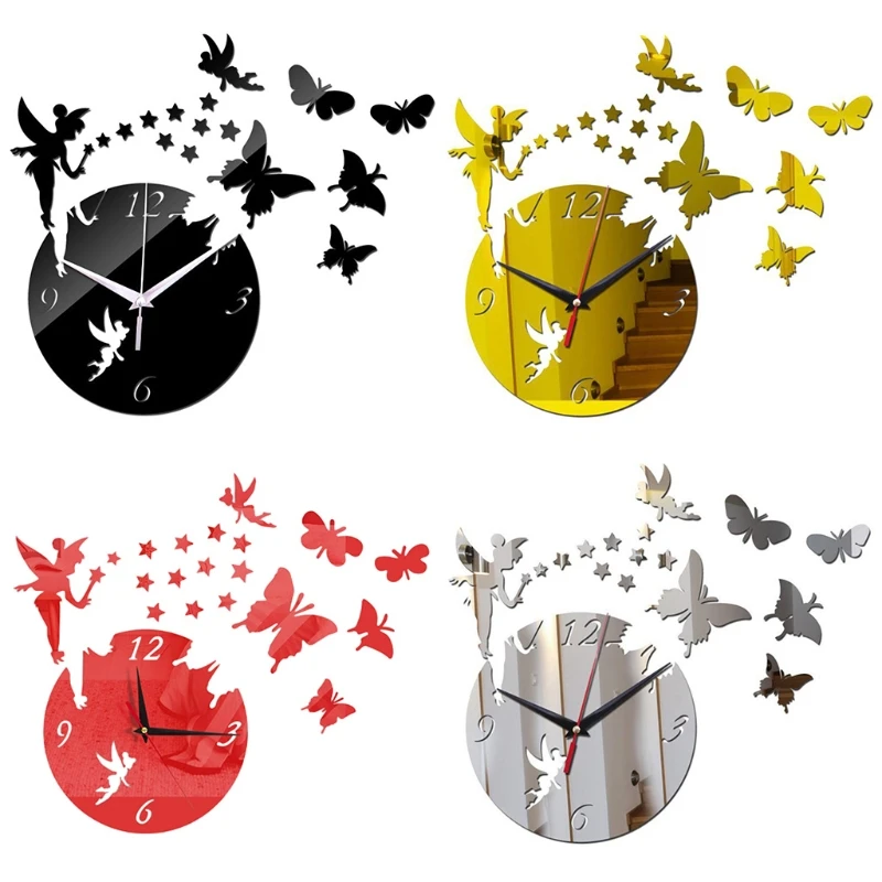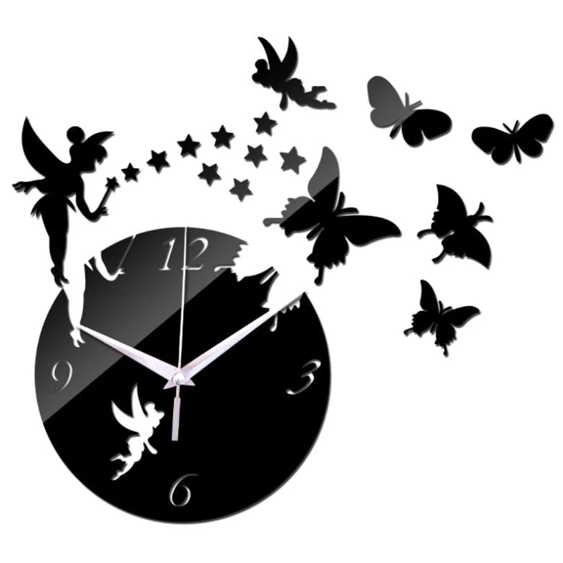 Акриловые зеркальные настенные 3d-часы H051 сделай сам, наклейка, сказочные звезды, бабочки, декор для гостиной, спальни, украшение для дома