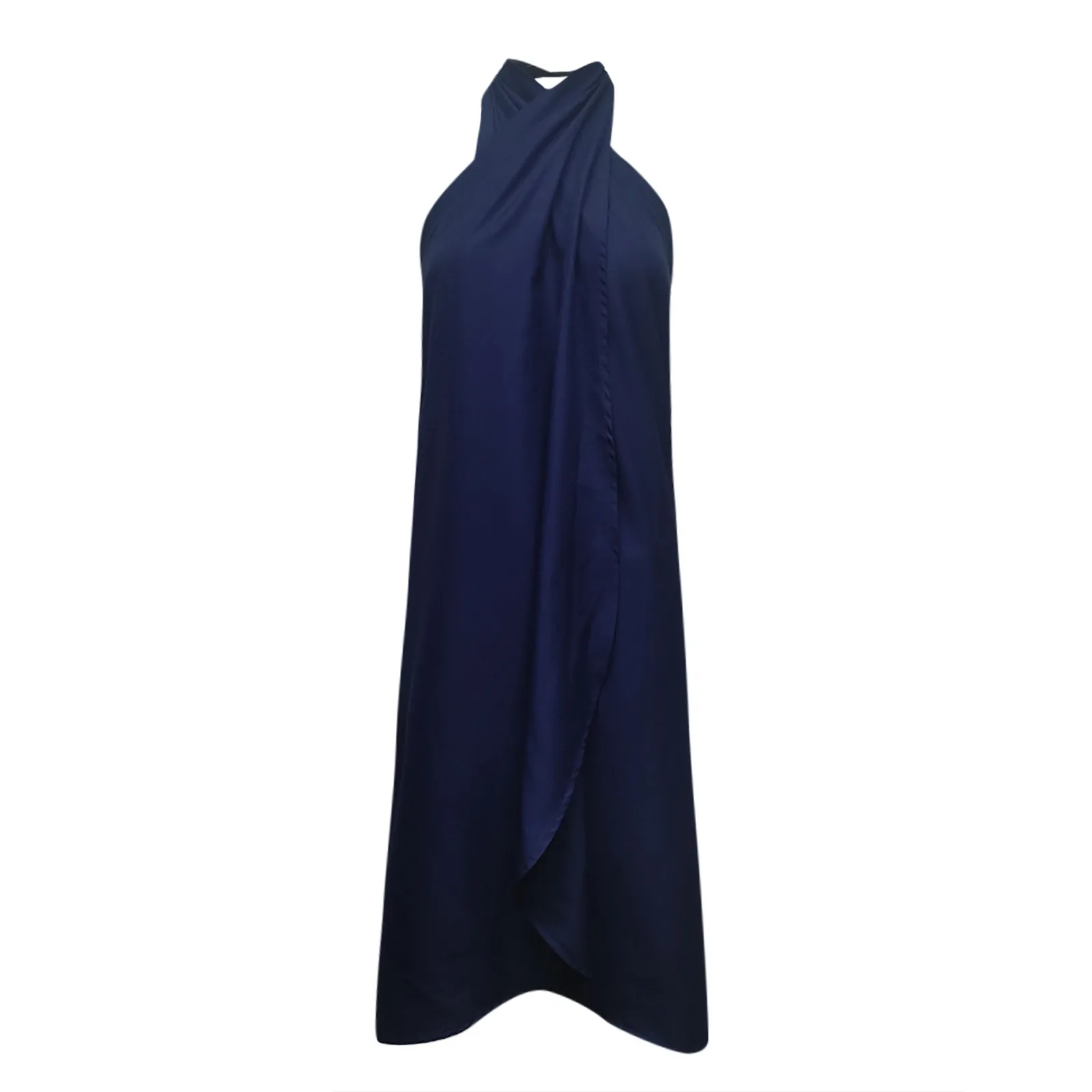 Женское летнее Свободное платье с воротником-хомутом и асимметричным подолом, повседневное пляжное платье