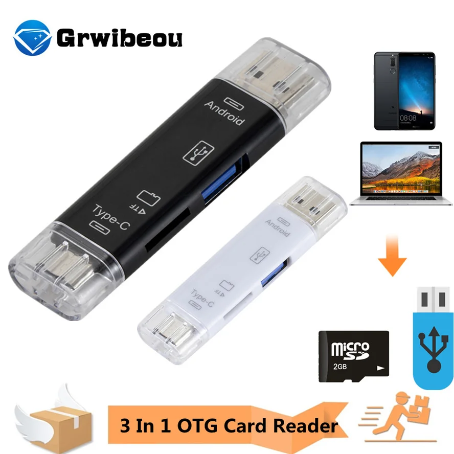 3-в-1 OTG кардридер Grwibeou Type C, MicroUSB и USB, высокоскоростной Универсальный OTG TFUSB для Android, компьютерные удлинители